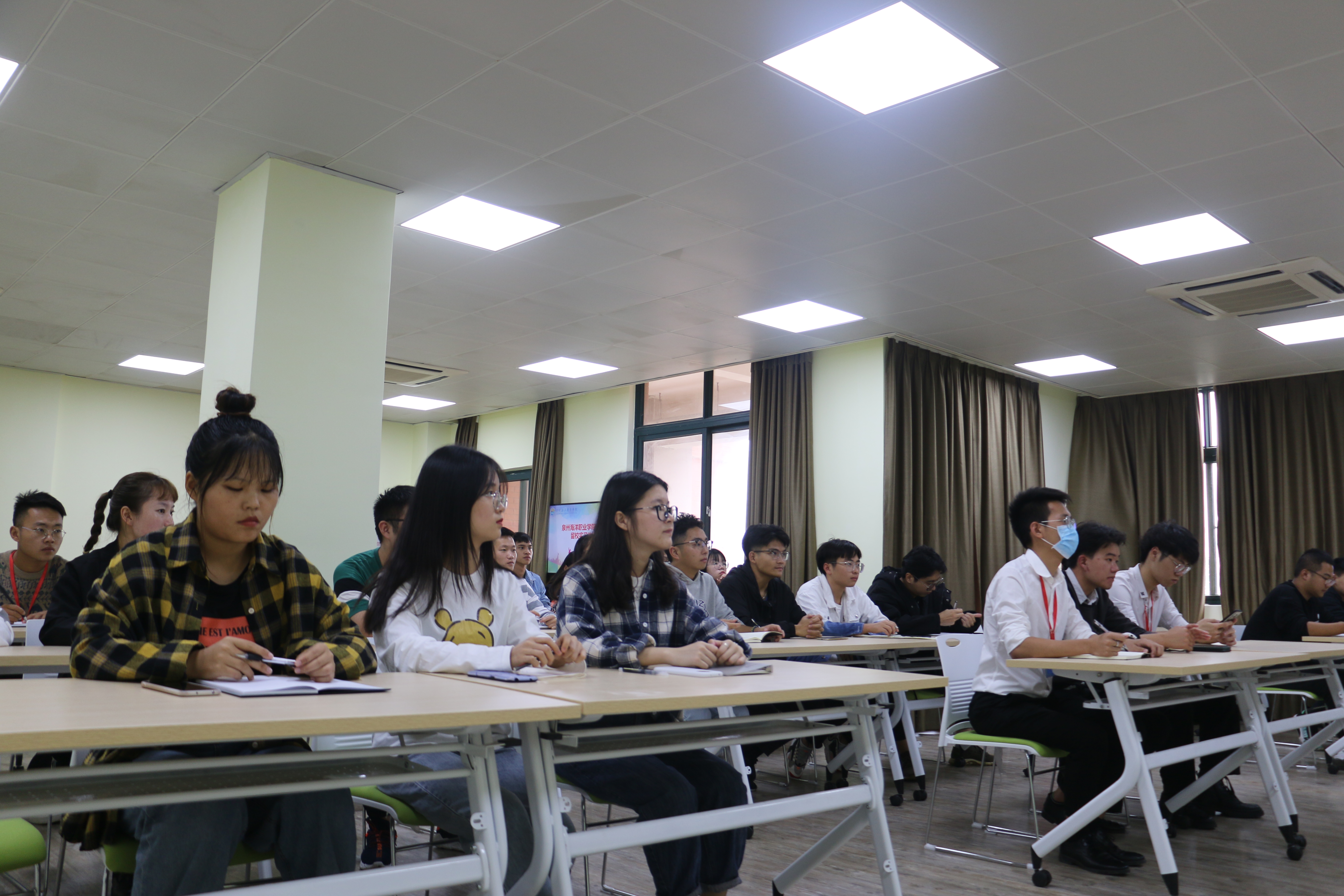 新闻中心讯(沈神英供稿 党委宣传部报道)为帮助留校实习生转变角色,泉州海洋职业学院组织人事处于10月22日下午组织召开留校实习生培训会。此次培训以主题讲座形式由组织人事处处长官磊带来“办公室礼仪”主题讲座。培训分为基本礼仪、日常礼仪、办公礼仪三大模块,官磊处长围绕上班前准备、建立良好人际关系、办公秩序、形象塑造、语言沟通、会务礼仪等方面,以理论分析、交流互动、现场演示等方式对礼仪等知识进行了全面、规范的讲解,在交流互动过程中她也为与会实习生指出了座位安排及握手礼仪中存在的礼仪误区。