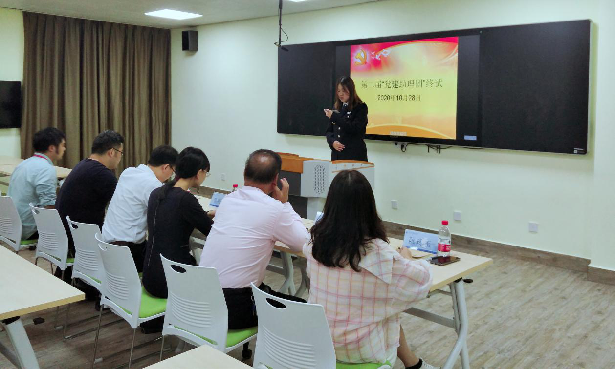 新闻中心讯(党委宣传部报道)2020年10月28日晚,中共泉州海洋职业学院委员会第二届大学生党建助理团公开选拔终试活动在行政楼智慧教室举行。校党委副书记李明灿出席活动并担任评委,家事护理学院党总支书记陈经义、海洋工程学院党总支副书记吴丽娇、经济管理学院党支部副书记吴志雄、休闲文旅学院党总支副书记陈合喜、党委秘书阮玲玉老师等担任评委。校海丝讲解团团长张馨同学主持活动。
