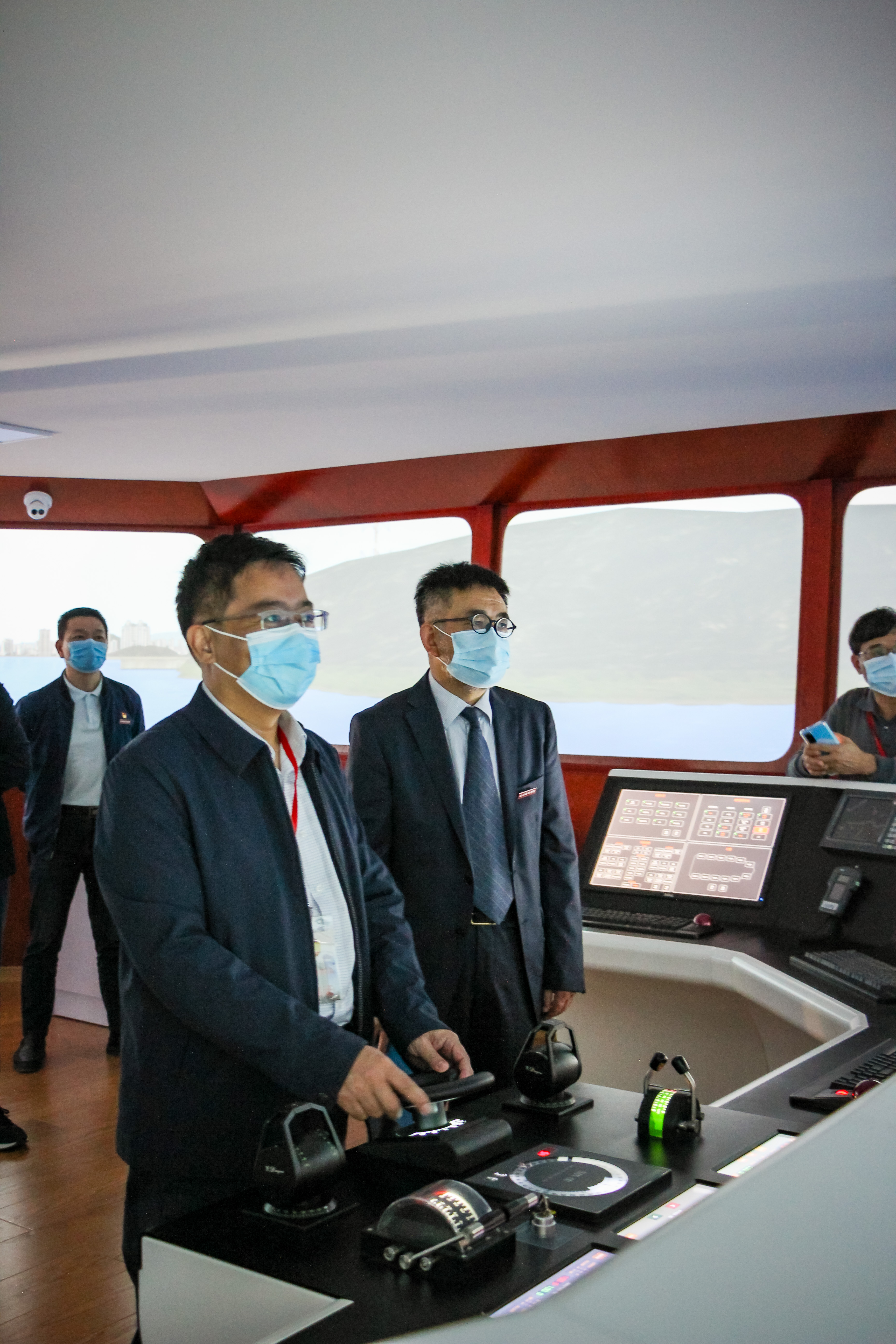 会后,来宾一行参观了我校全视景船舶操纵模拟实训室,详细了解了我校实训场地设备。