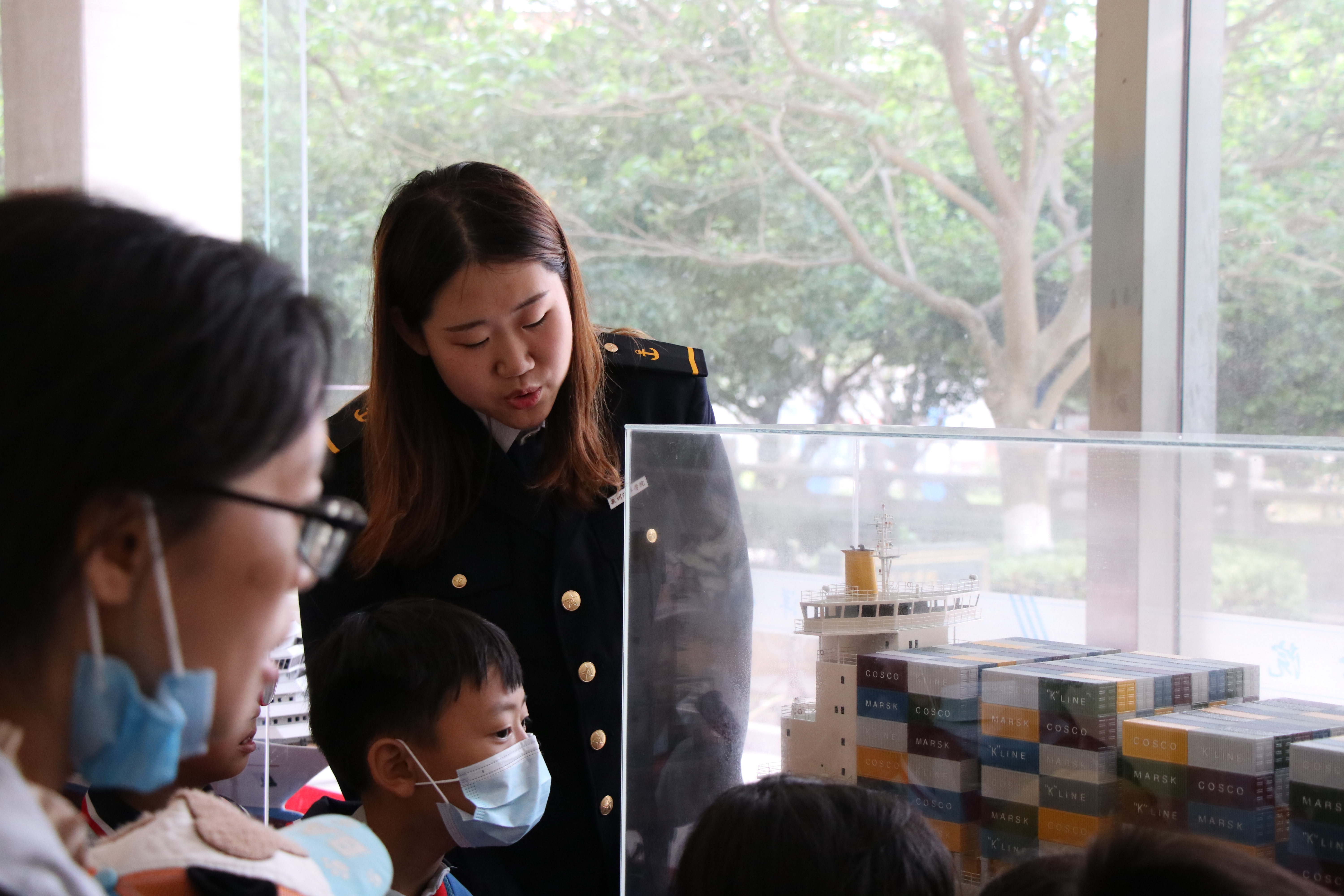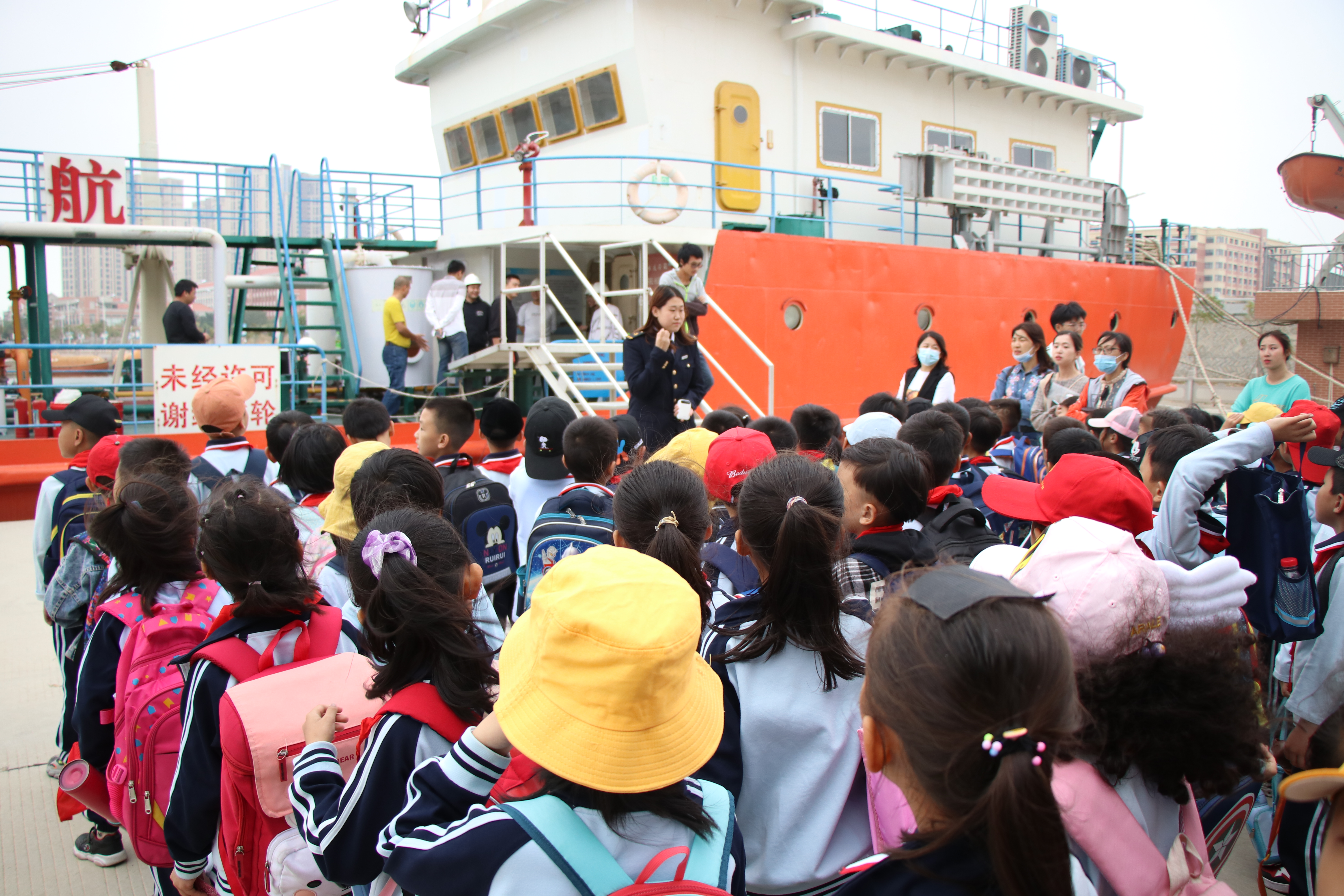 他们首先参观了我校世界特种船舶展示厅。船舶展示厅内,讲解员为大家简要介绍了展示的船舶模型,二年级的同学们纷纷表现出抑制不住的好奇与激动。之后还兴致勃勃地参观了我校的水上实训基地——育航号,轮机实训中心、以及北大门。