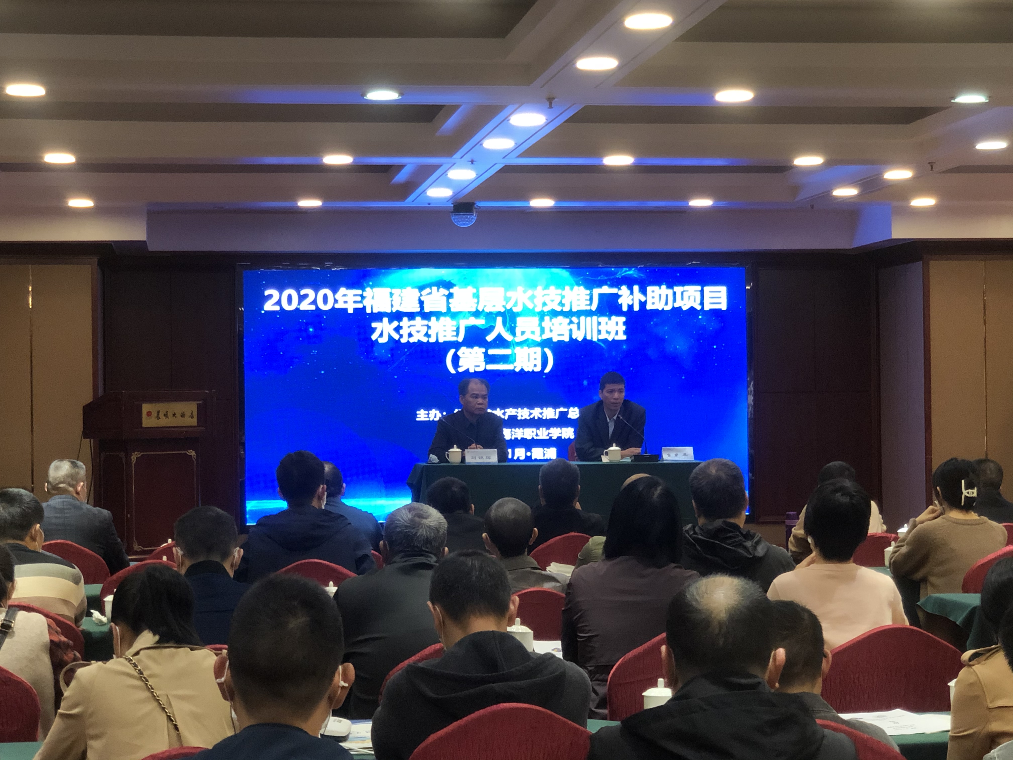 新闻中心讯(国际船员专修学院供稿 党委宣传部报道)为大力提升基层水技推广体系公共服务能力,提高基层水技推广人员的综合素质,助推乡村振兴战略实施,受福建省水产技术推广总站委托,11月23日至11月28日,我校承办的福建省2020年第二期基层水技推广体系改革与建设补助项目水技推广人员培训班在霞浦成功举办。福建省水产技术推广总站站长康建平、泉州海洋职业学院副校长刘锦辉出席了开班仪式。