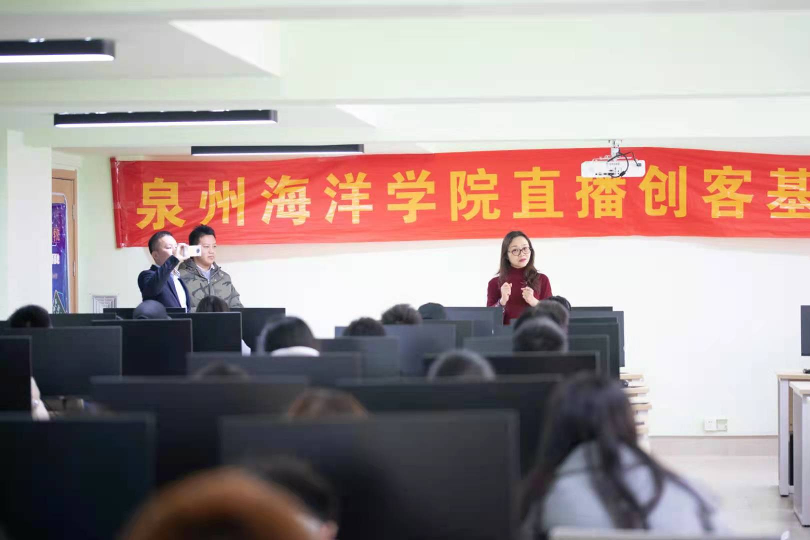 新闻中心讯(经济管理学院 吴婷谊供稿 党委宣传部报道)为提升学生新媒体营销专业技能、促进学生创新创业团队发展,我校于12月21日中午携手福建千玺文化传媒有限公司在智慧商务创客基地举行了直播创客基地启动仪式。