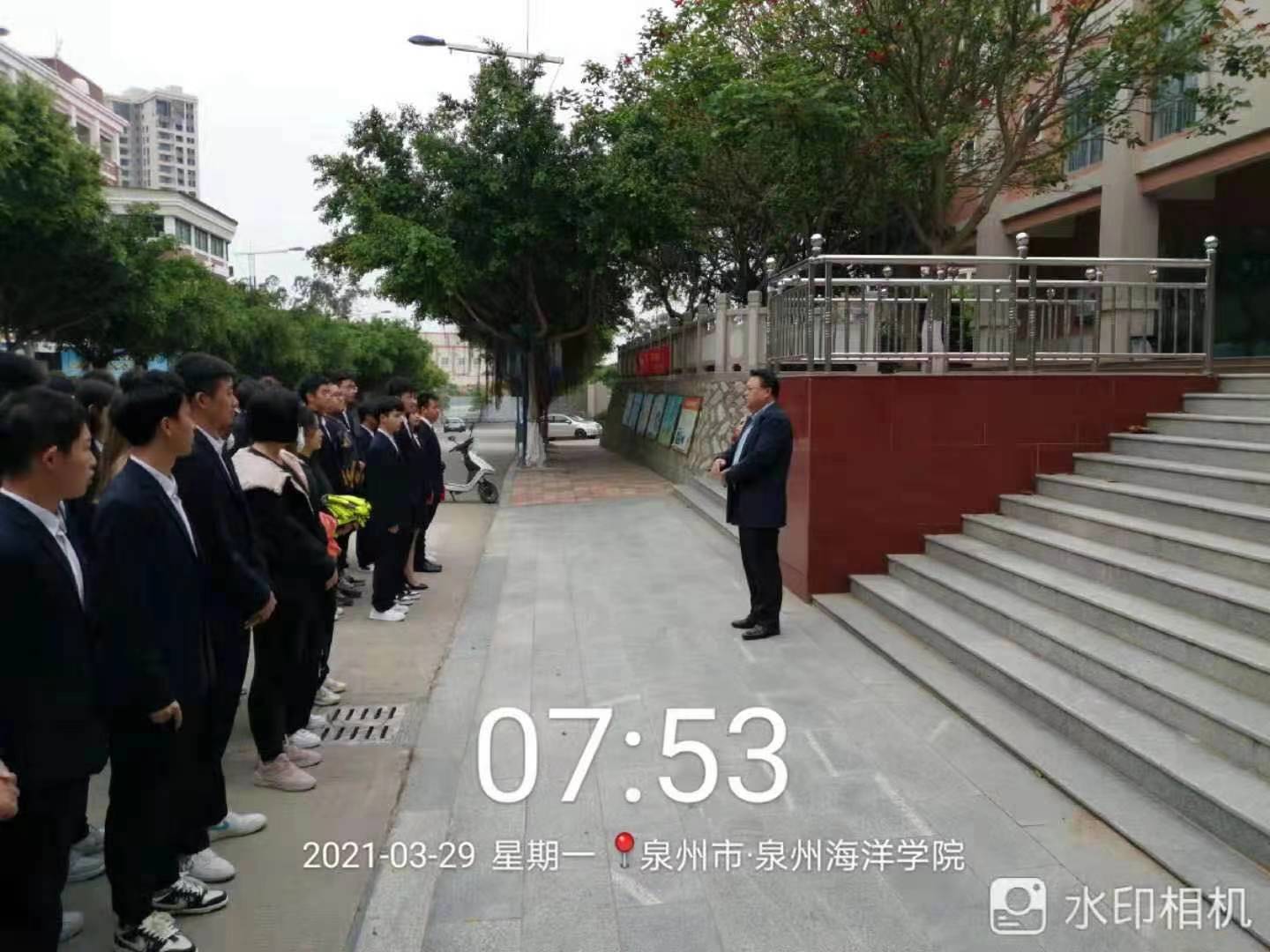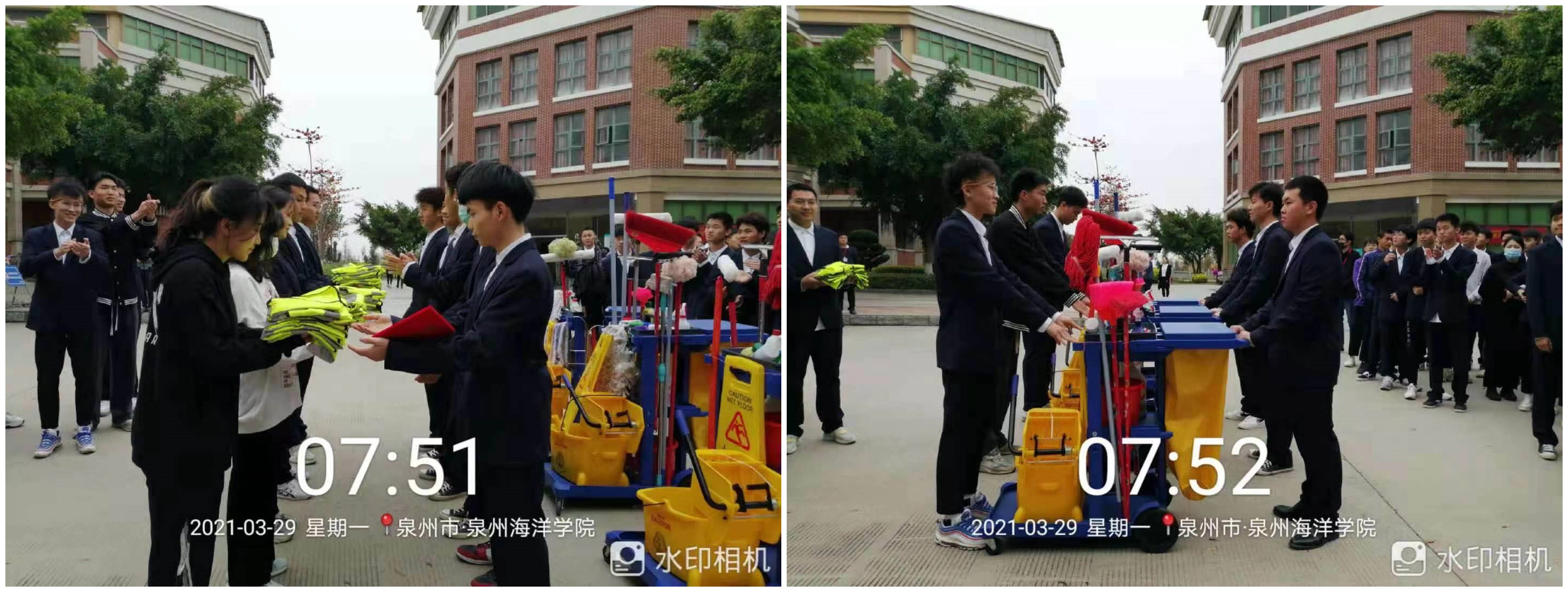 新闻中心讯(休闲文旅学院吴云东供稿 党委宣传部报道)为进一步加强泉海新时代大学生的劳动教育,培养学生树立正确的劳动价值观、良好的劳动品质以及较好的生活习惯,促进同学们在劳动实践中得到锻炼,培养学生爱校的意识,本学期第一期劳动周颁奖暨交接仪式于2021年3月29日早上8点在行政楼国旗台下正式拉开了序幕。执行校长曾谊晖、副校长钱学东、学生发展与工作部副部长张婉薇及上学期最后一期和本学期第一期参与劳动周的班级及相关辅导员参与本次仪式。