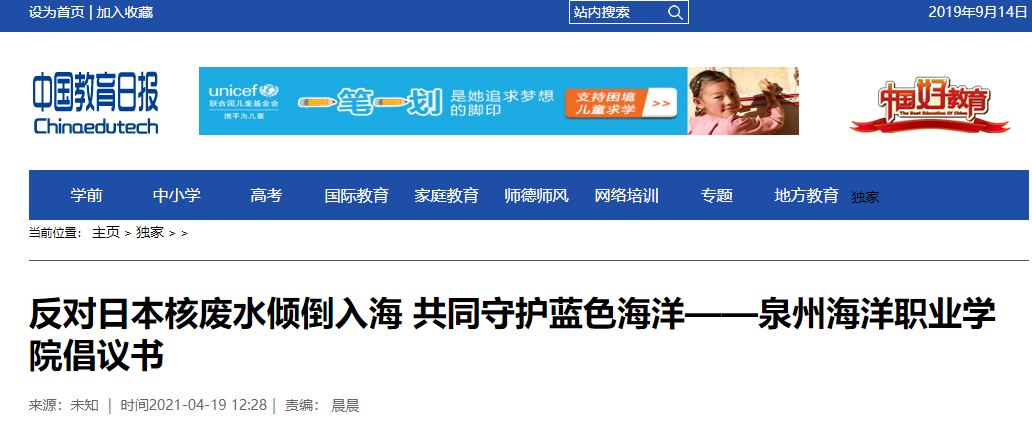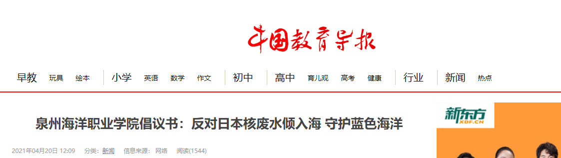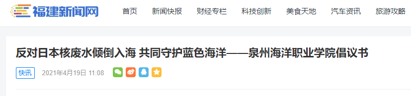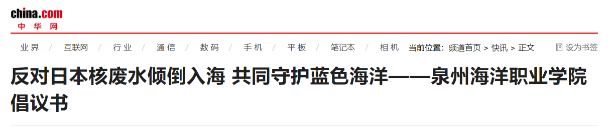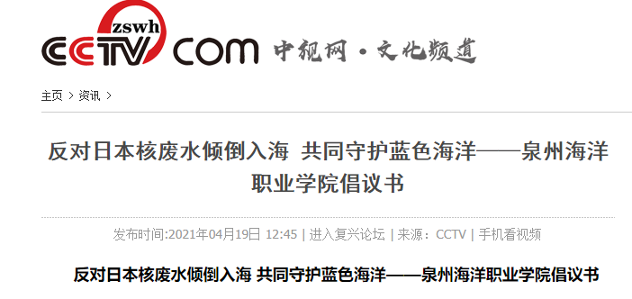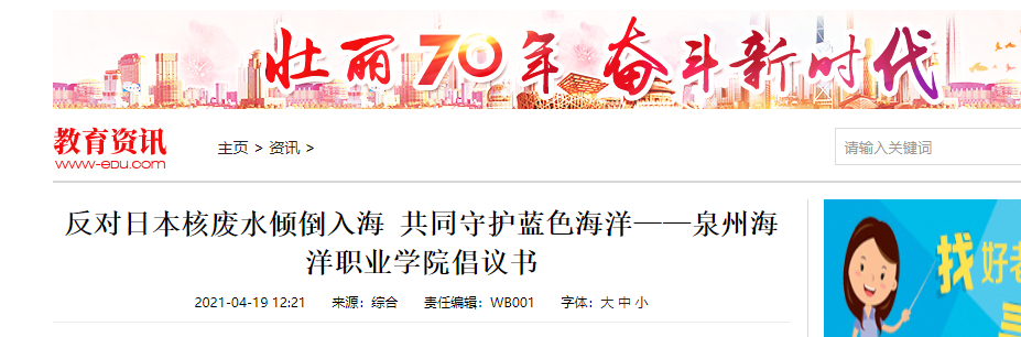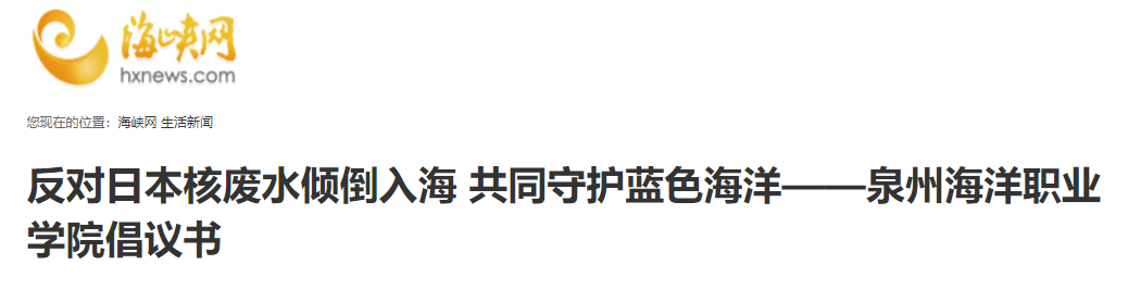 新闻中心讯(党委宣传部报道)我校作为涉海专业院校,是海洋产业的建设者,同时也是守护蓝色海洋的护卫士,对日本政府近期单方面决定向海洋排放福岛核电站事故核废水一事提出强烈抗议,并发出《反对日本核废水倾倒入海 共同守护蓝色海洋——泉州海洋职业学院倡议书》,号召全球海洋院校与海洋环保组织一道谴责和强烈抗议日本政府错误决定。