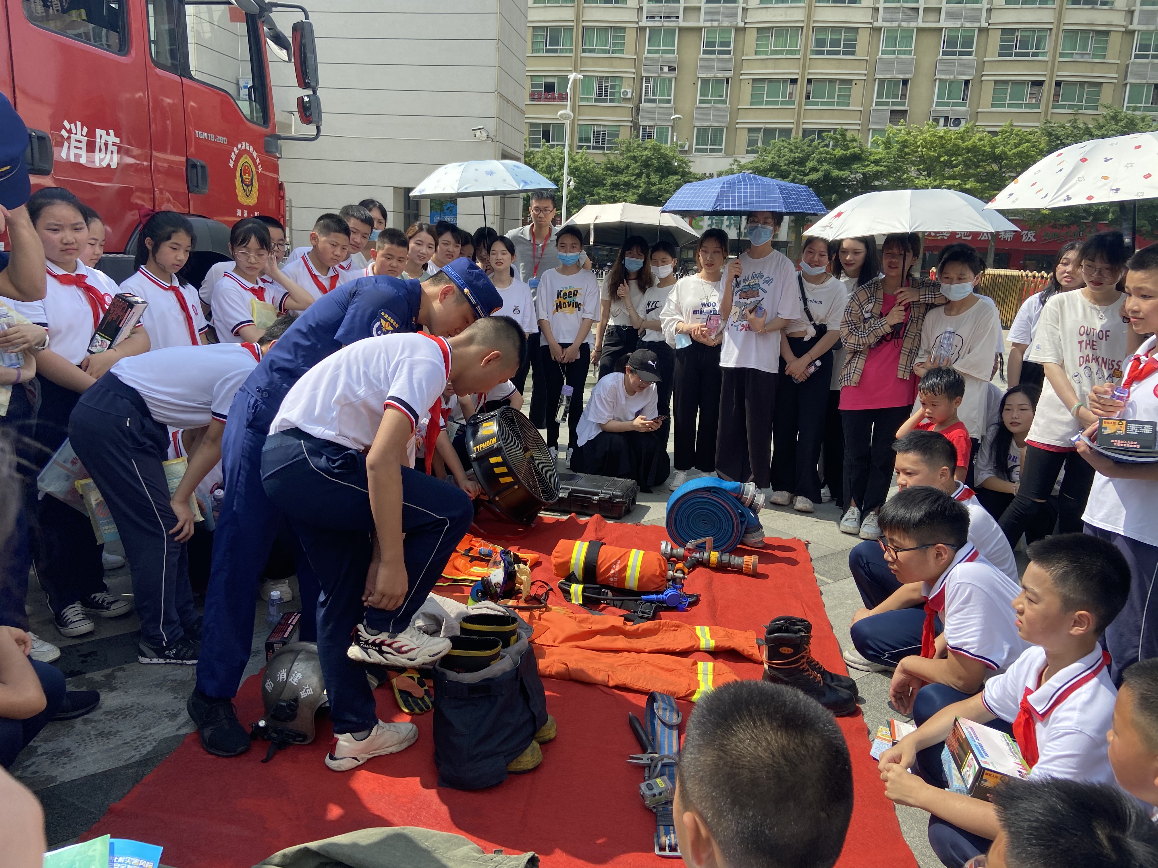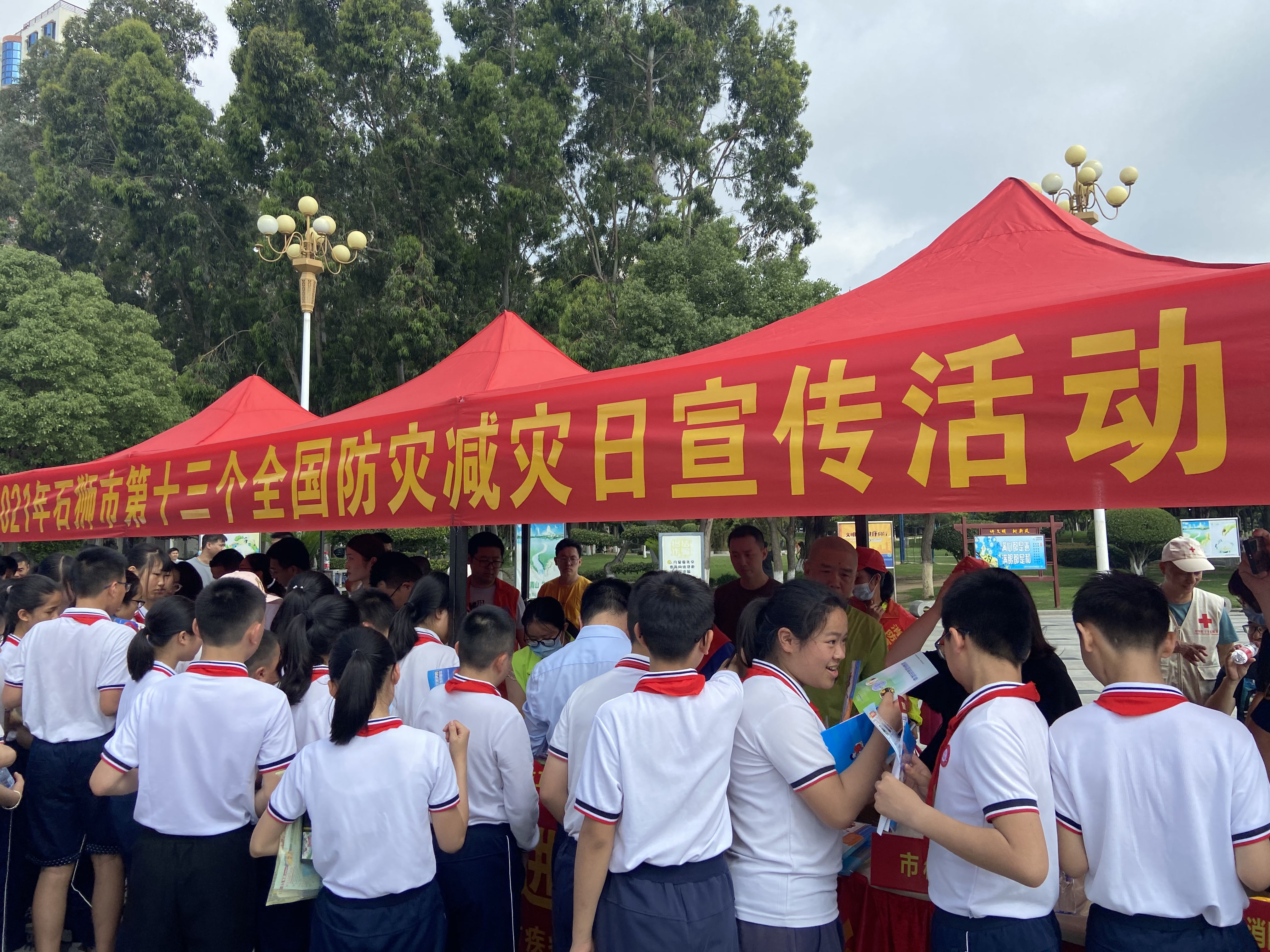 新闻中心讯(学生发展工作部郑恭辰供稿 党委宣传部报道)2021年5月12日是我国第13个全国防灾减灾日,为深入贯彻落实习近平总书记关于防灾减灾救灾的重要论述精神,牢固树立“人民至上,生命至上”的防灾减灾理念,并做好灾害风险防范化解工作,5月12日上午,石狮市减灾委员会联合市消防大队、市科协、市卫健局、市地震办、市疾病预防控制中心、市自然资源局、市应急管理局、市教育局、市红十字协会等部门在石狮市龟湖公园广场开展以“防范化解灾害风险,筑牢安全发展基础”为主题的宣传咨询活动。我校派出五十名学生代表参加本次活动。