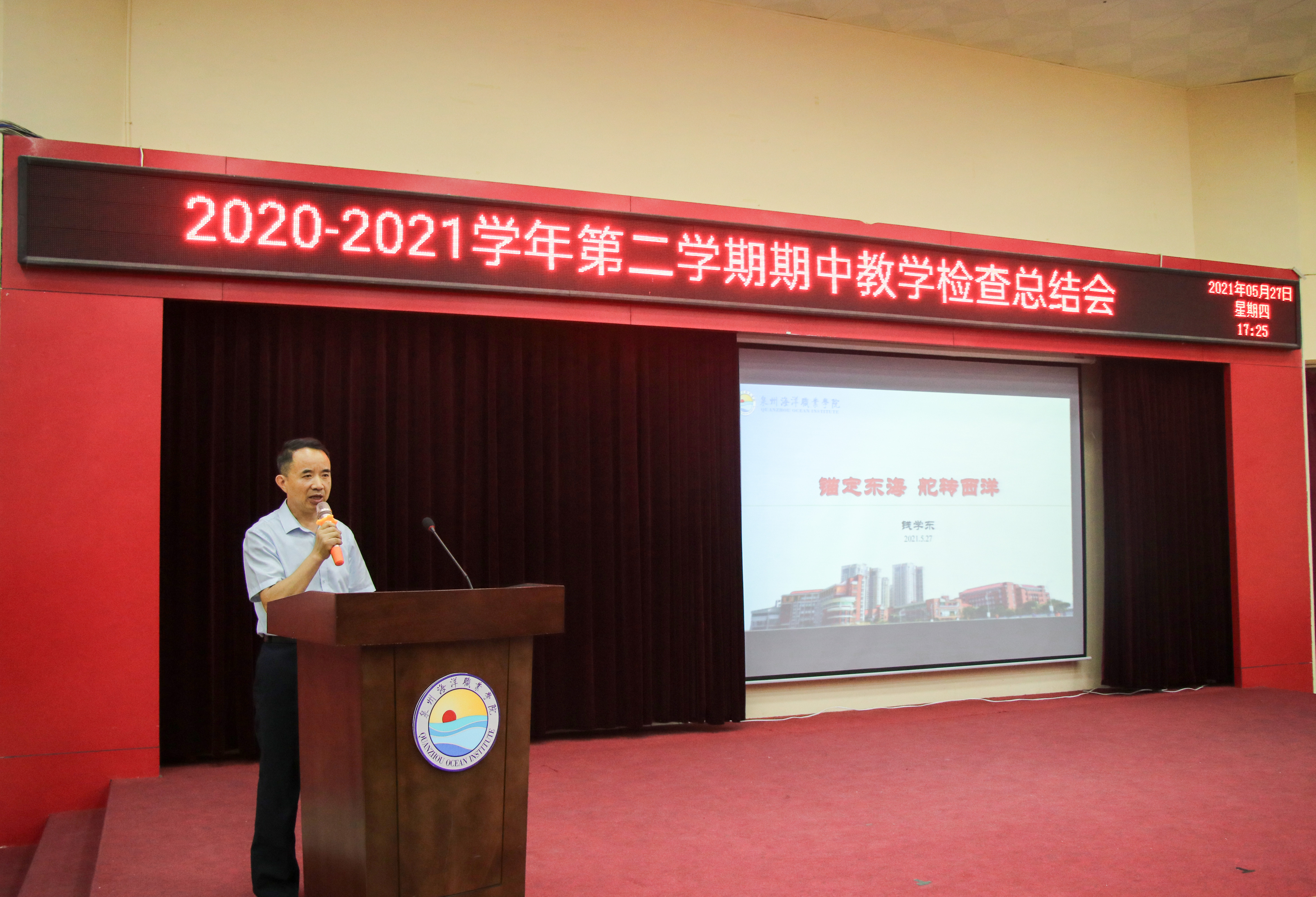 钱副校长发表了《锚定东海 舵转西洋》的主题讲话。他指出,作为一名教师要坚持不忘初心、锚定东海,砥砺前行、舵转西洋,认真教学,对学生负责,对家长负责,对社会负责,争做一名优秀的人民教师。同时,钱副校长从授课内容、课堂节奏的把握、与学生的互动交流、备课、课程思政和终生学习等六方面对老师提出了相关要求,他表示,作为教师要对教学和课堂有敬畏心,应秉持爱岗敬业的精神和认真负责的工作态度。最后,钱副校长希望各位教师以成为一名优秀教师为目标,与学校共同成长。