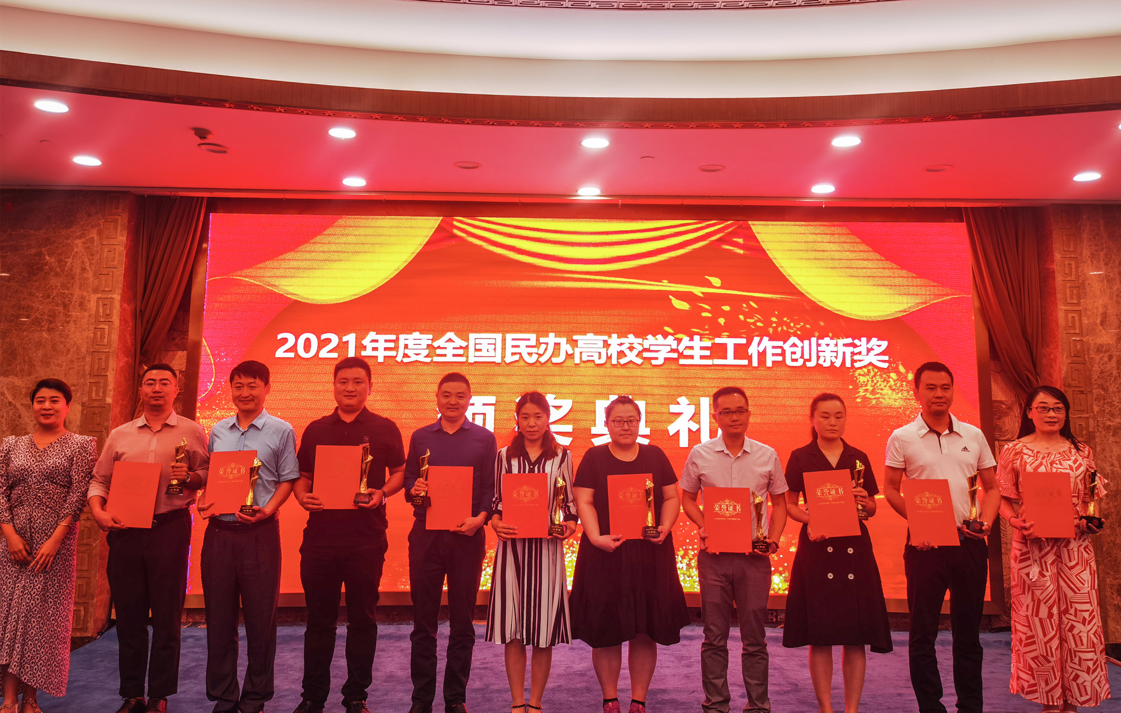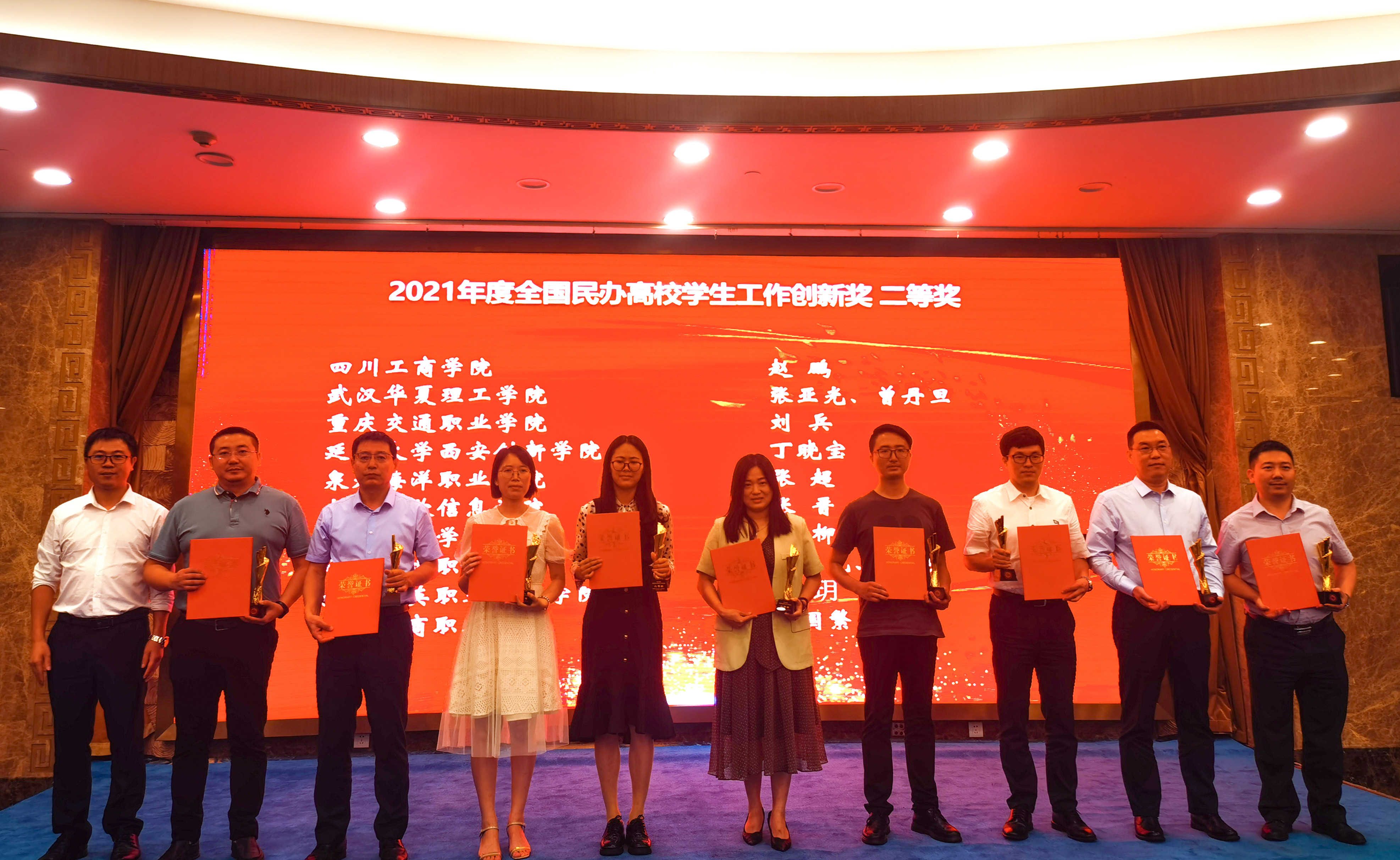 大会的重头戏——第九届全国民办高校学生工作创新颁奖典礼中,我校张超副校长和苏良城部长的论文荣获2021年度全国民办高校学生工作创新成果奖“二等奖”。
