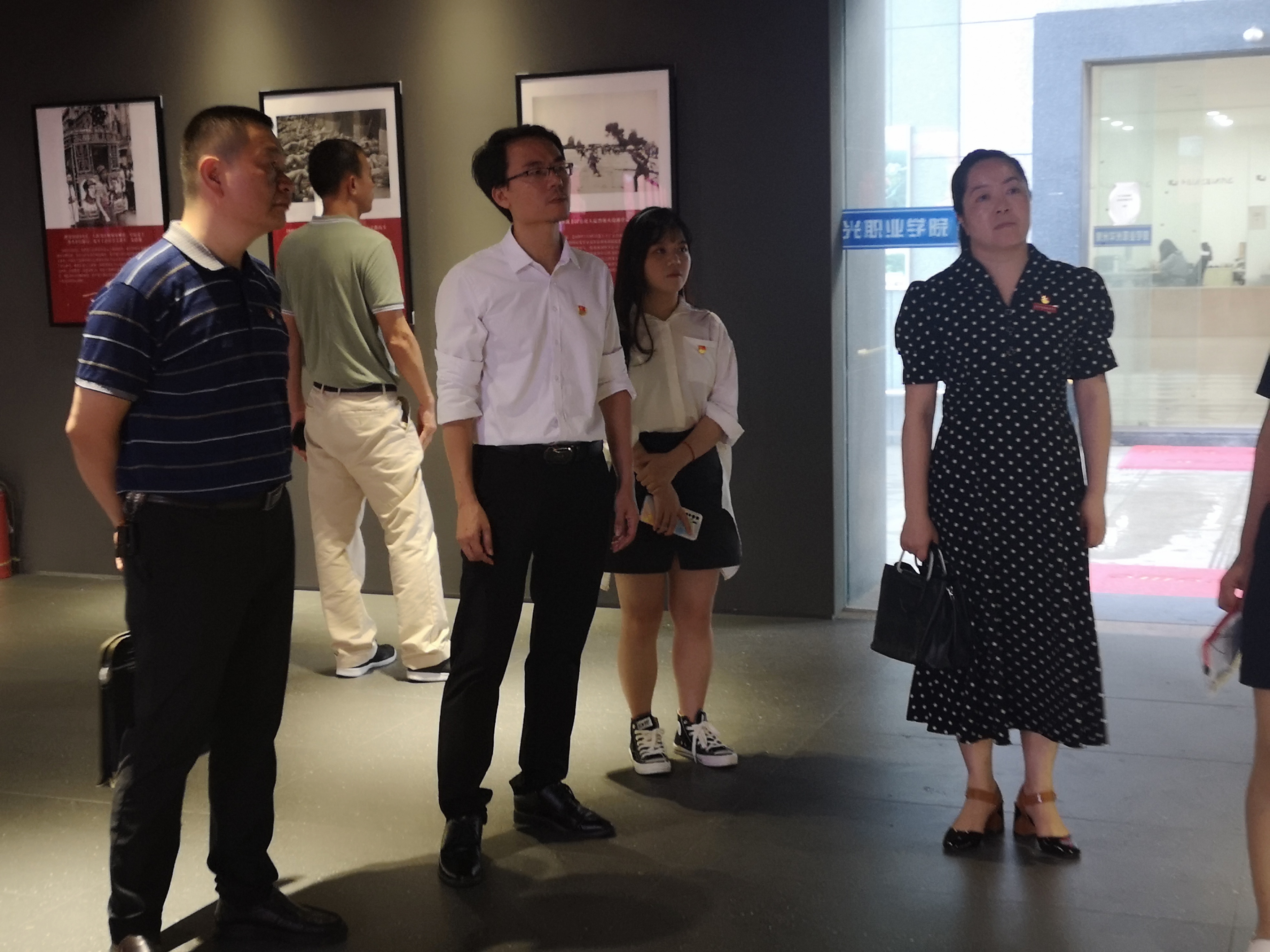 随后,双方就党建、宣传、思政等话题进行深入沟通交流,碰撞了火花,启发了工作新思路。最后,吴颖芳书记等人陪同党委书记梁松刚一行参观了华光学院的教育学院实训楼、“奋斗百年路,启航新征程”摄影展和摄影实训大楼融媒体中心等,并进行合影留念。