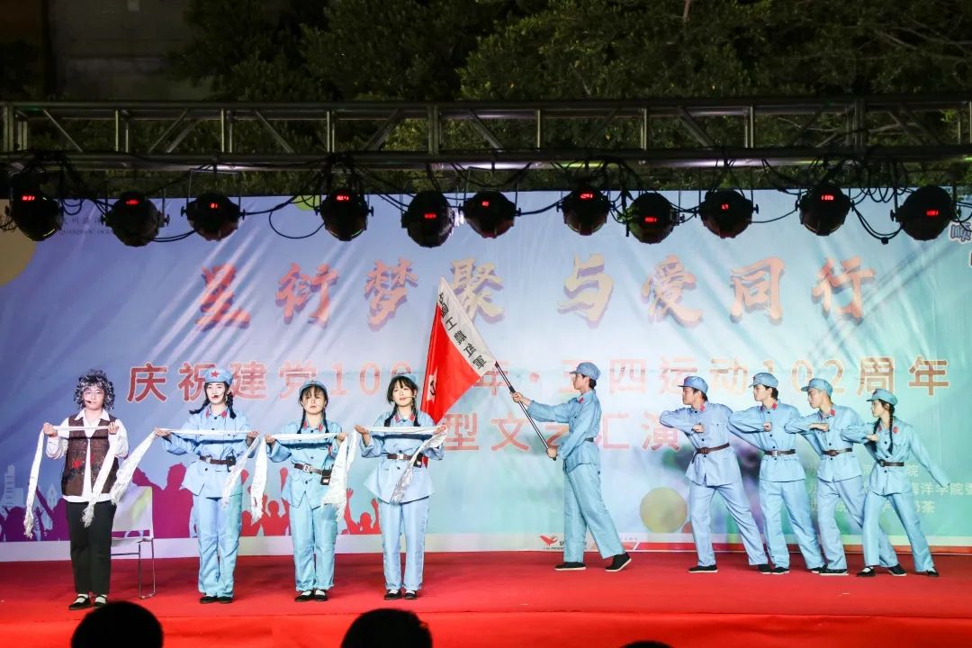 一是举行一场红色汇演。以五四青年节为契机,举行“庆祝建党100周年,五四运动102周年”红色主题文艺汇演,以红歌、诗朗诵、情景剧、相声等多种形式,讴歌中国共产党百年来风雨兼程的伟大成就,表达对党的崇高敬意及作为新时代青年不忘初心、接续奋斗的决心与勇气。