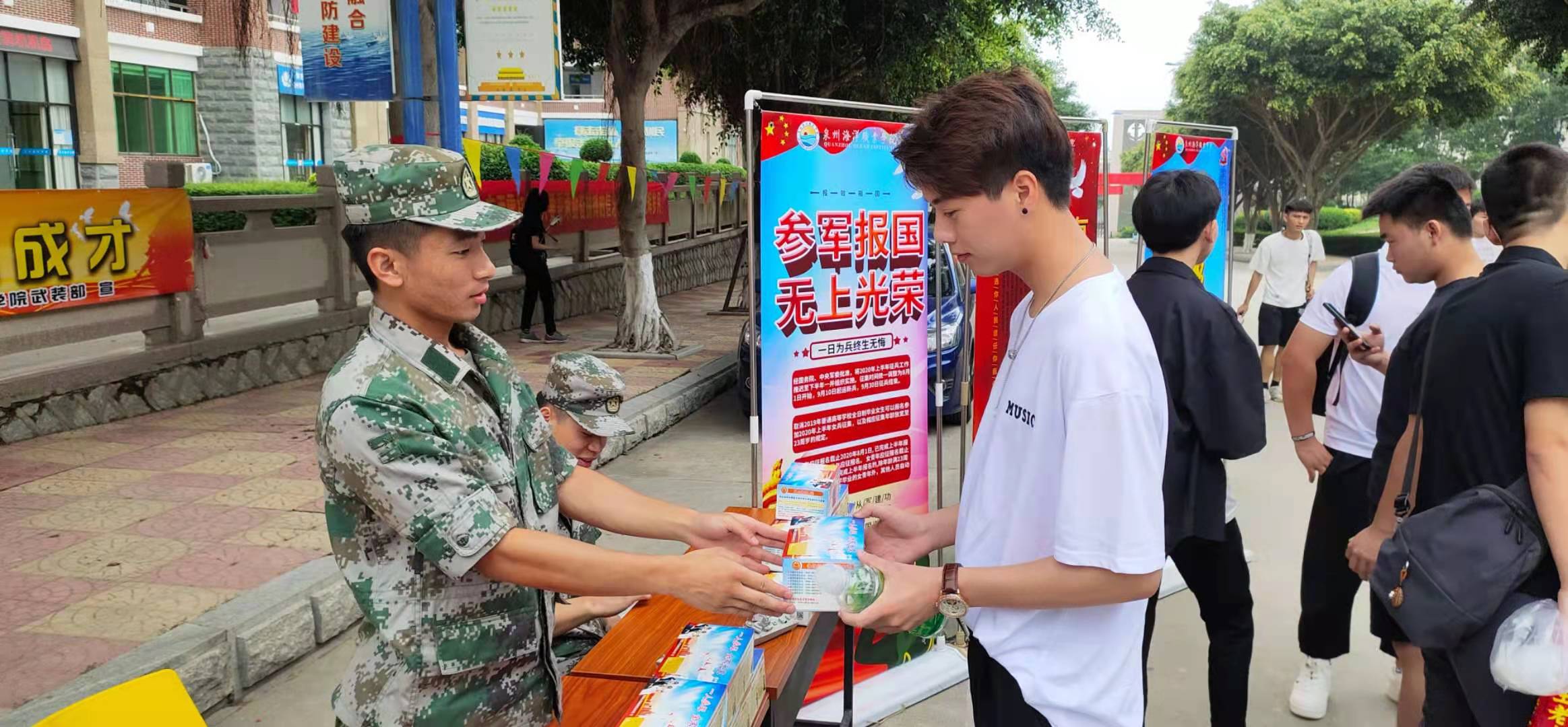 六月,是夏季正当时,也是青春散场、毕业在即之时。为切实做好毕业生征兵工作,2021年6月26日,正值2021届的学子们回校参加毕业典礼之际,我校武装部在学校主干道开展了征兵宣传工作。