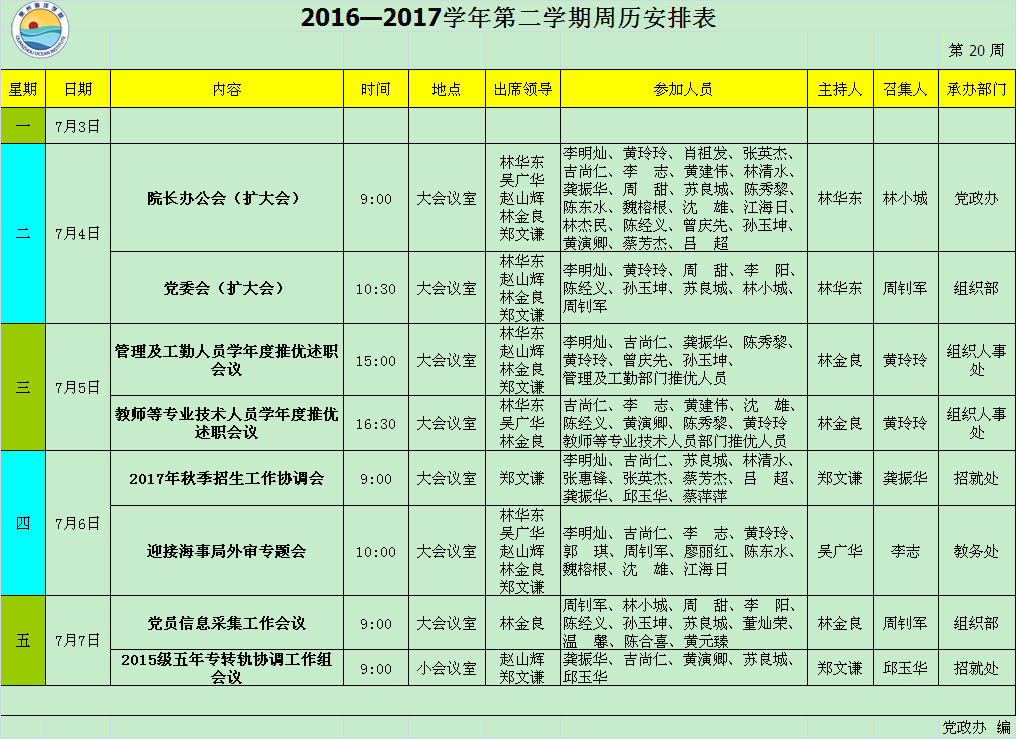 2016—2017学年第二学期第20周周历安排表