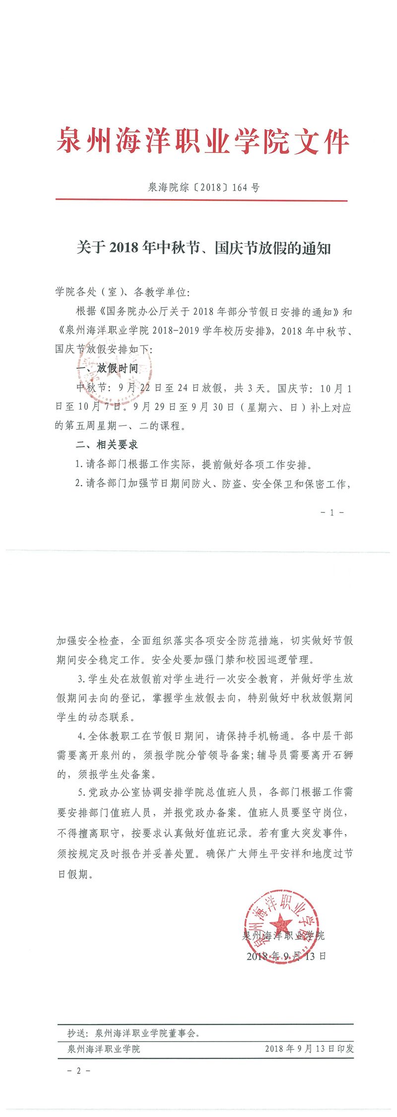 关于2018年中秋节与国庆节放假的通知
