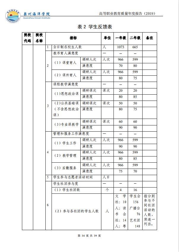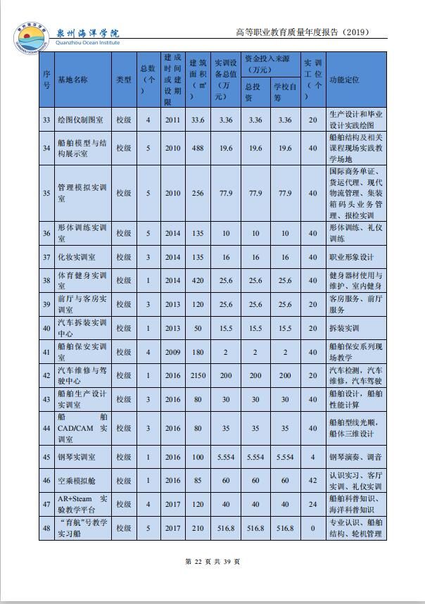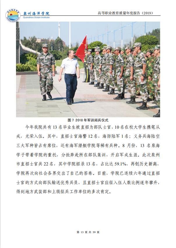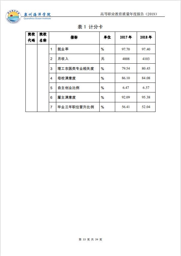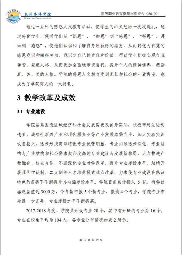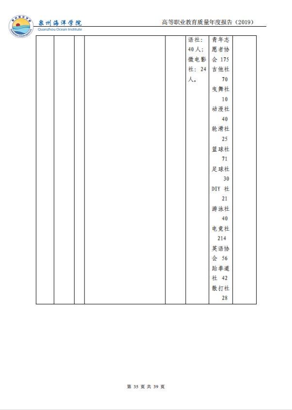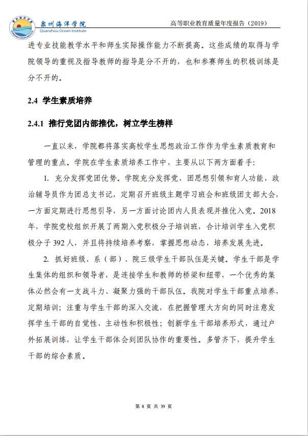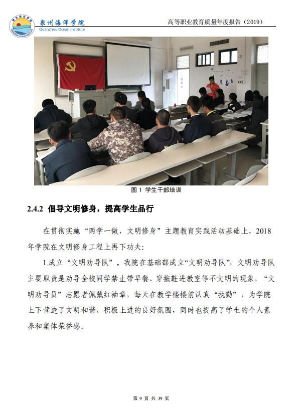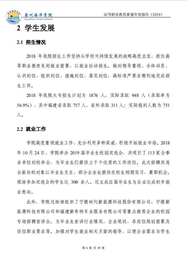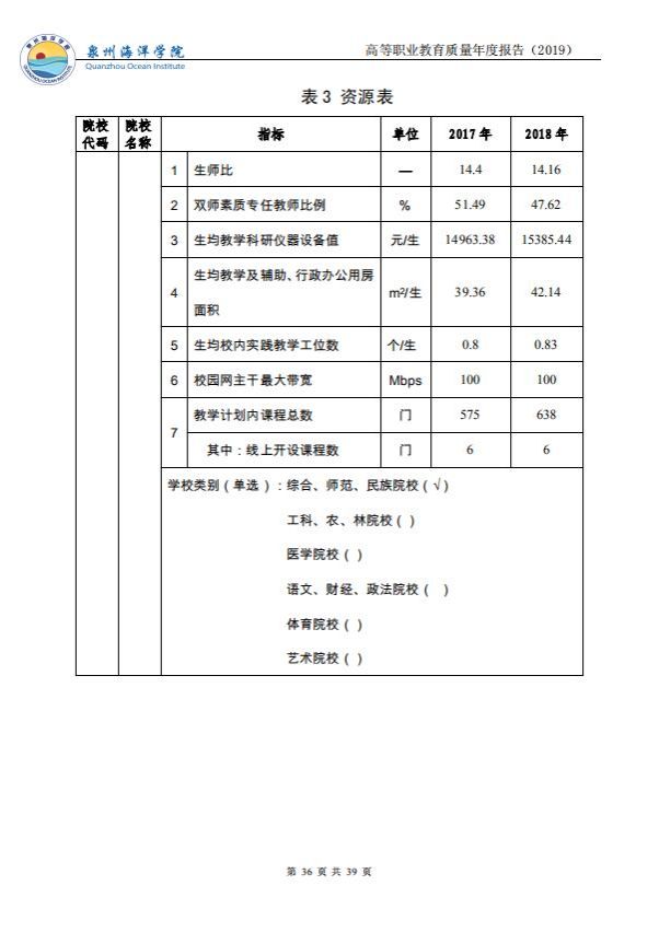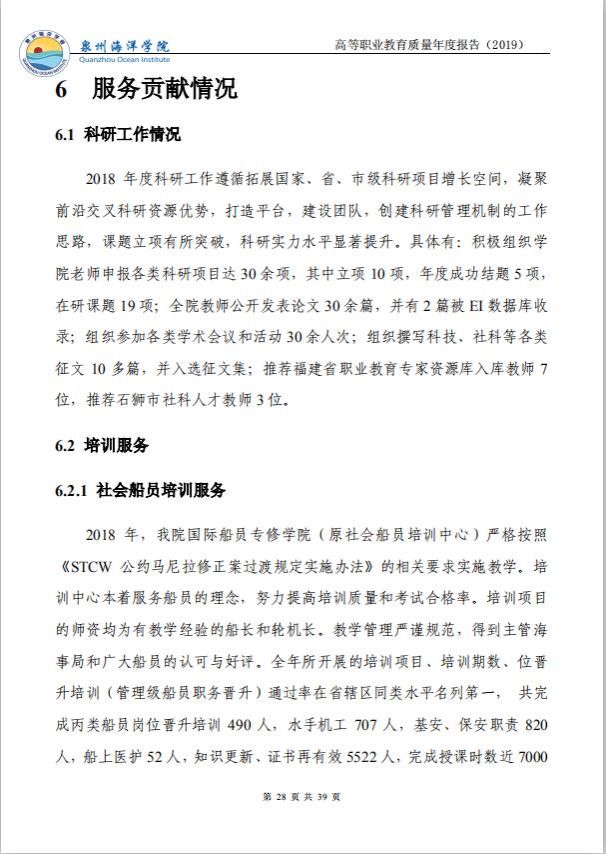 泉州海洋职业学院高等职业教育质量年度报告(2019)