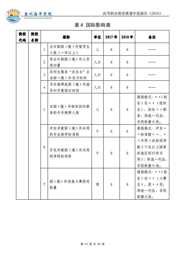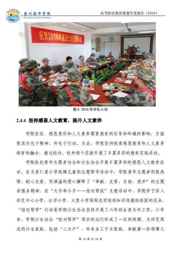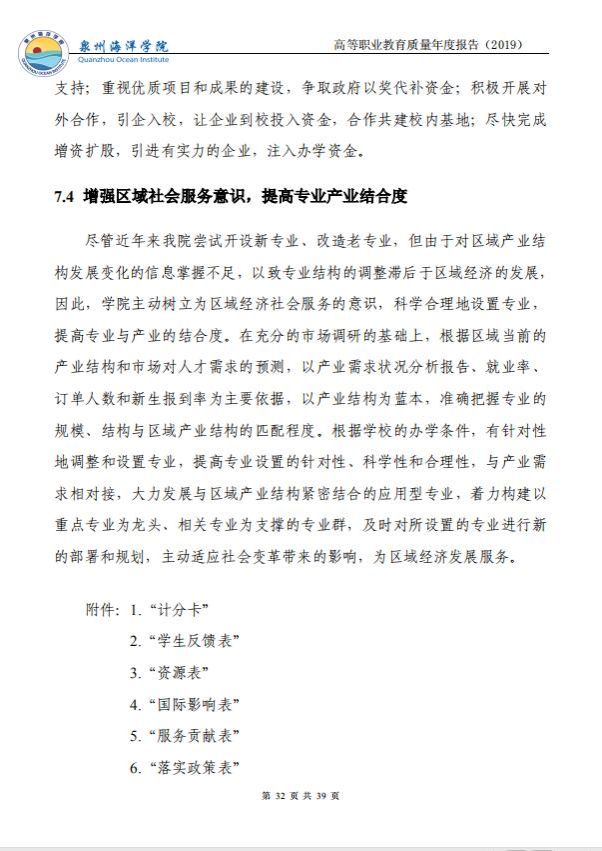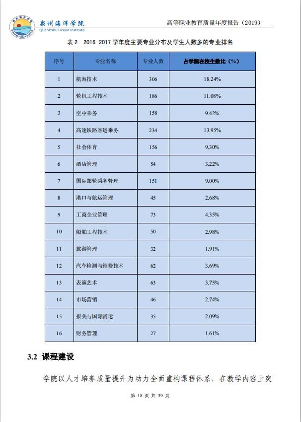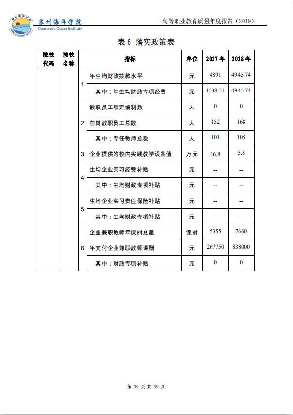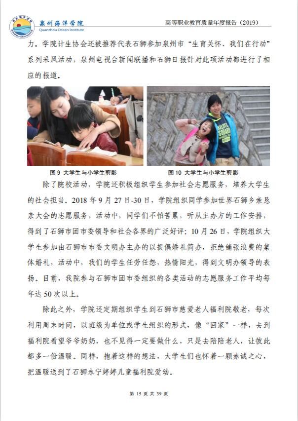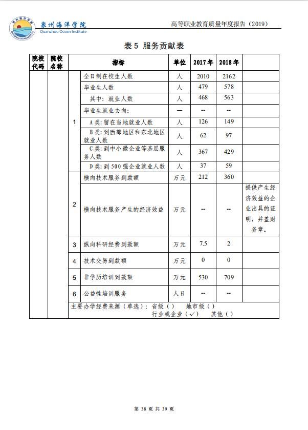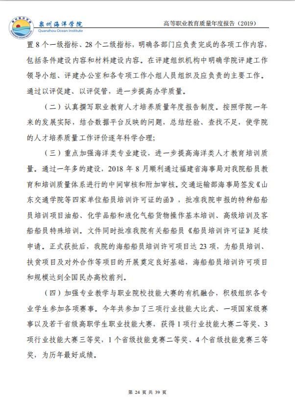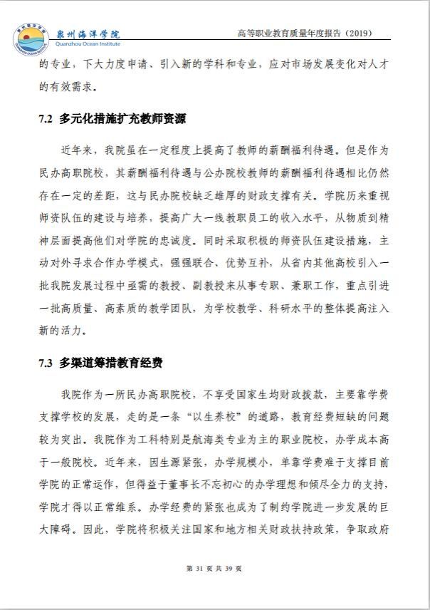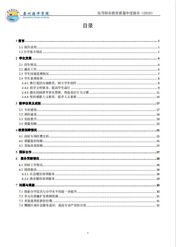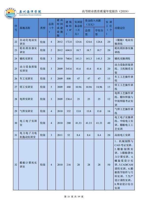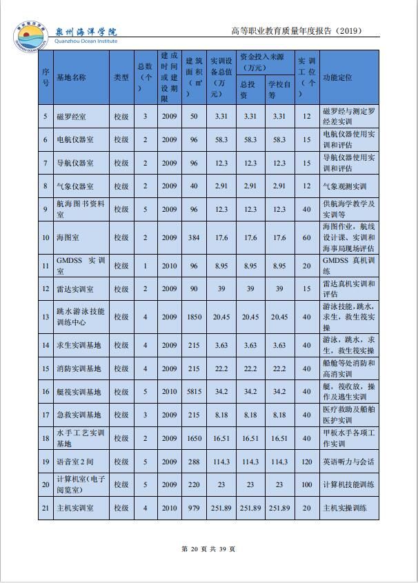 泉州海洋职业学院高等职业教育质量年度报告(2019)