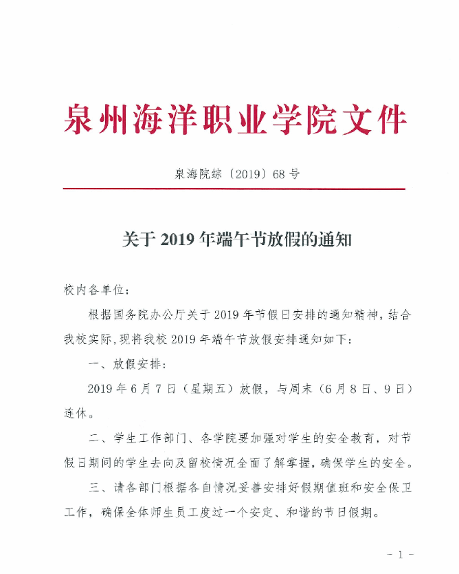 关于2019年端午节放假的通知