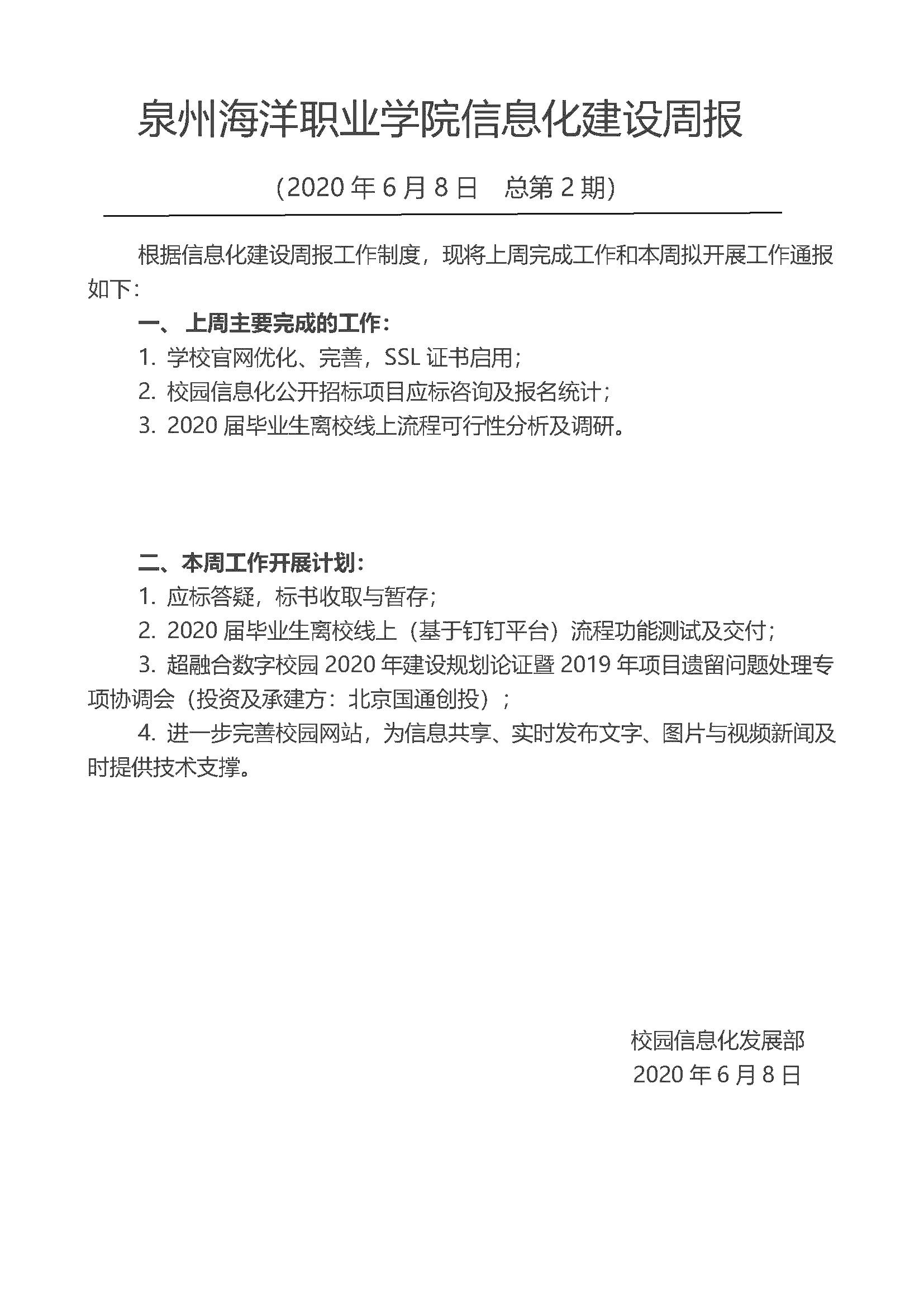 泉州海洋职业学院信息化建设周报(2020年6月8日 总第2期)