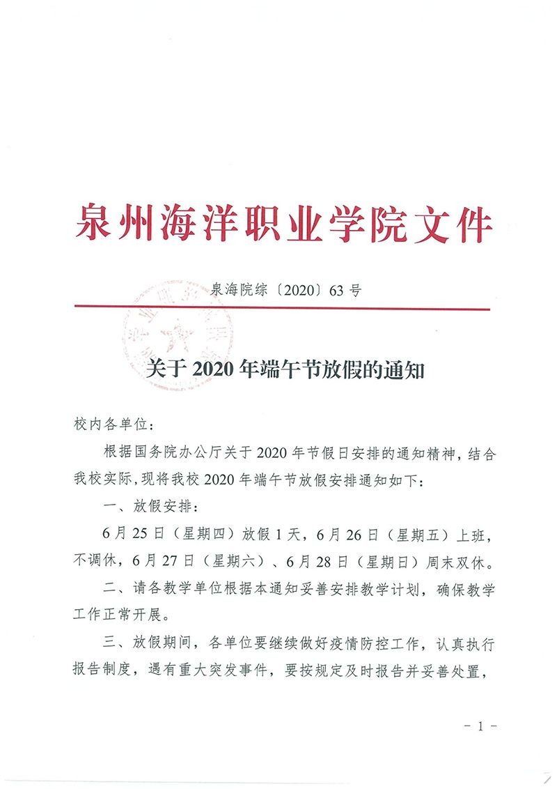 关于2020年端午节放假的通知
