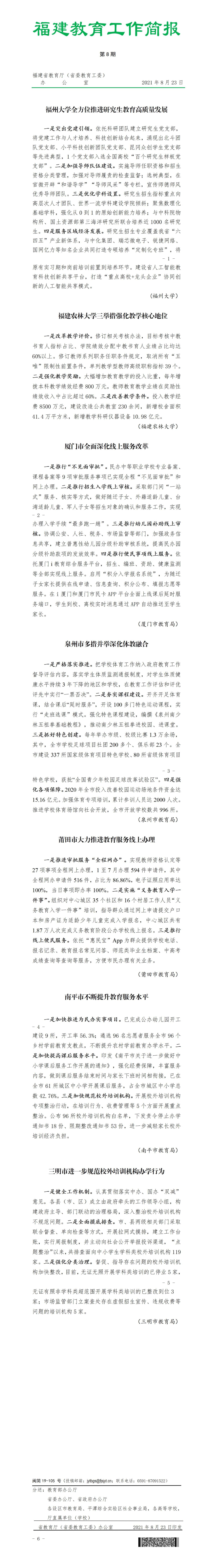 福建教育工作简报2021年第8期