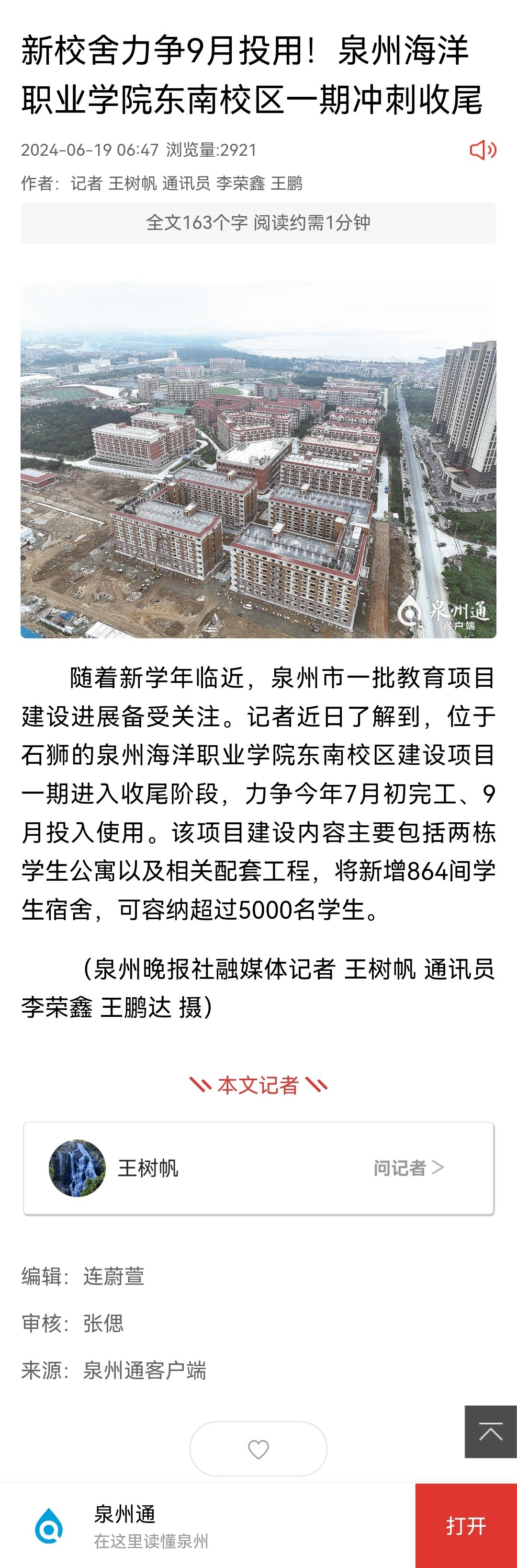 【泉州通】新校舍力争9月投用!泉州海洋职业学院东南校区一期冲刺收尾