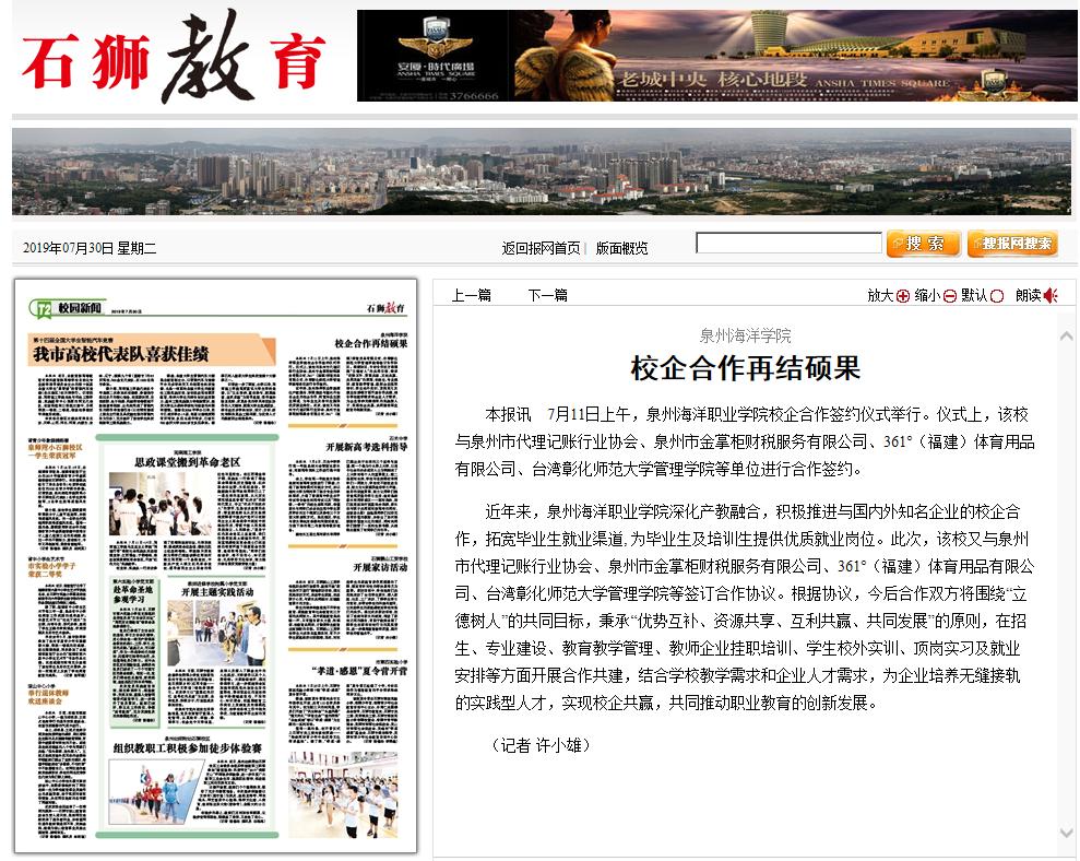 【石狮教育】校企合作再结硕果