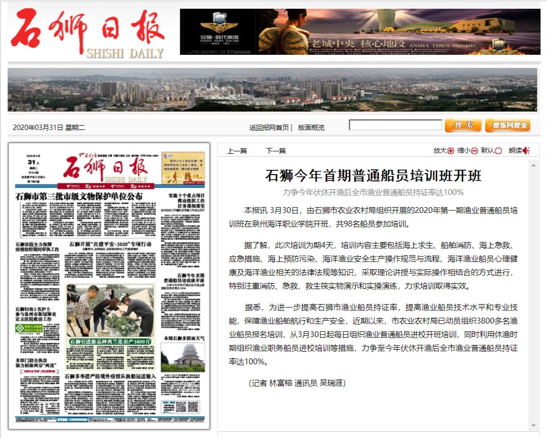 【石狮日报】石狮今年首期普通船员培训班开班