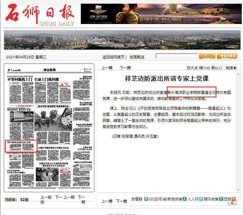 【石狮日报】祥芝边防派出所请专家上党课