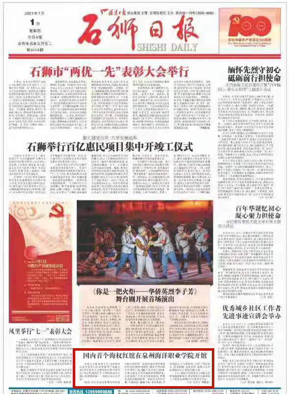 【石狮日报】国内首个海权红馆在泉州海洋职业学院开馆