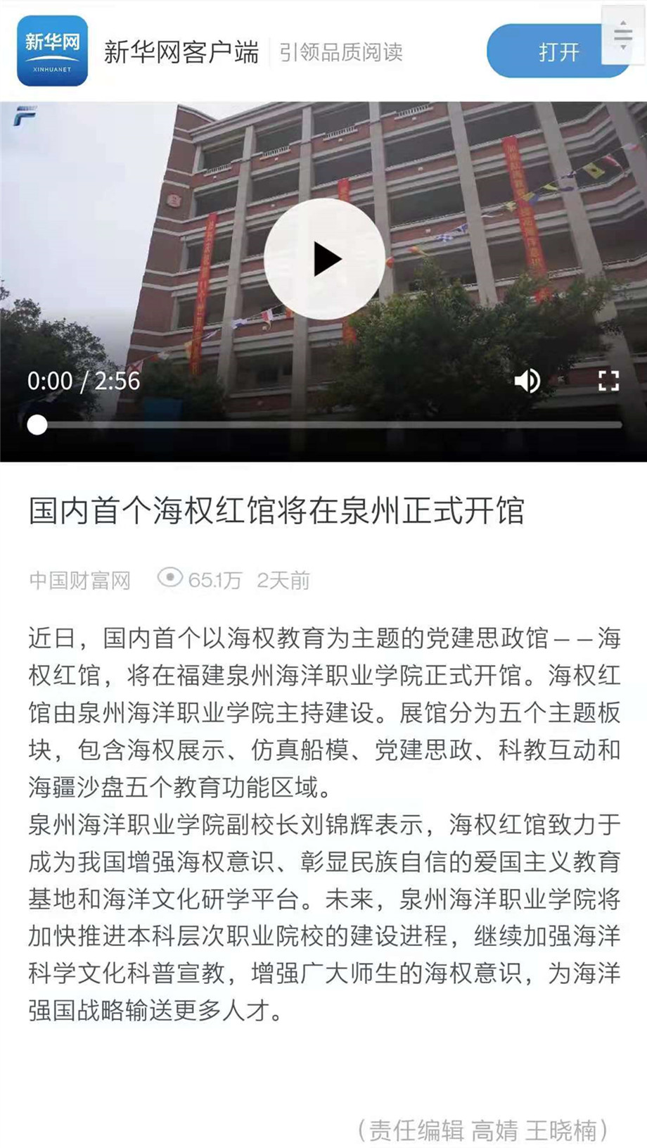 【网易】福建泉州海洋职业学院:海权红馆即将开馆