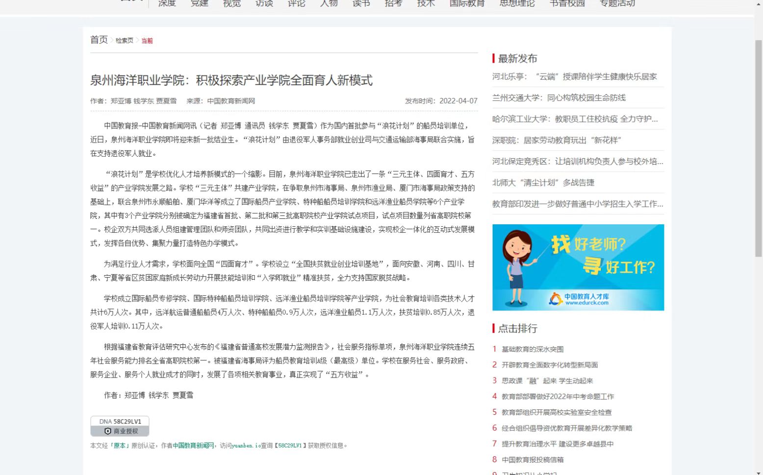 【中国教育新闻网】泉州海洋职业学院:积极探索产业学院全面育人新模式
