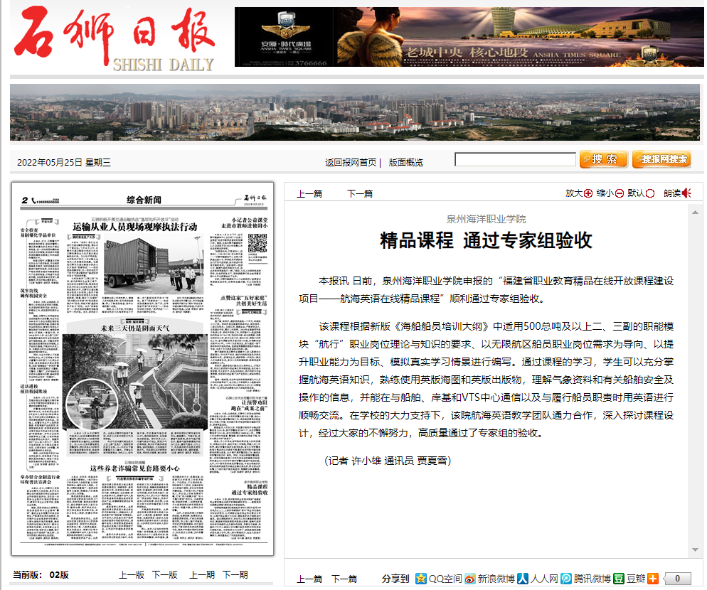 【石狮日报】精品课程 通过专家组验收