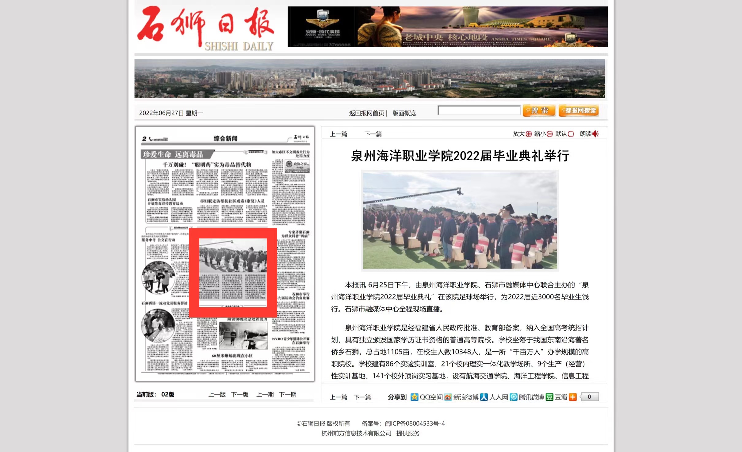 【石狮日报】泉州海洋职业学院2022届毕业典礼举行
