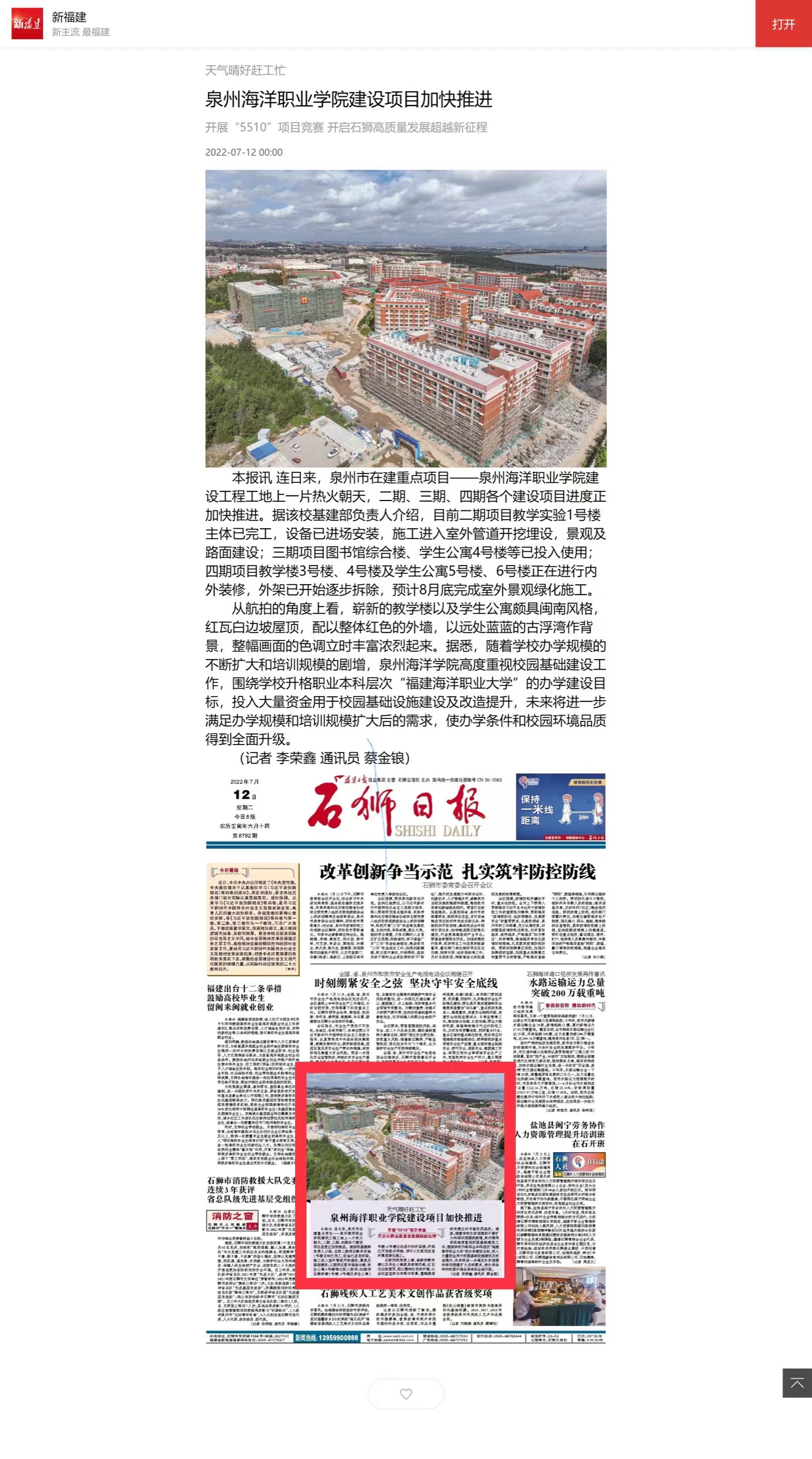 【新福建】泉州海洋职业学院建设项目加快推进