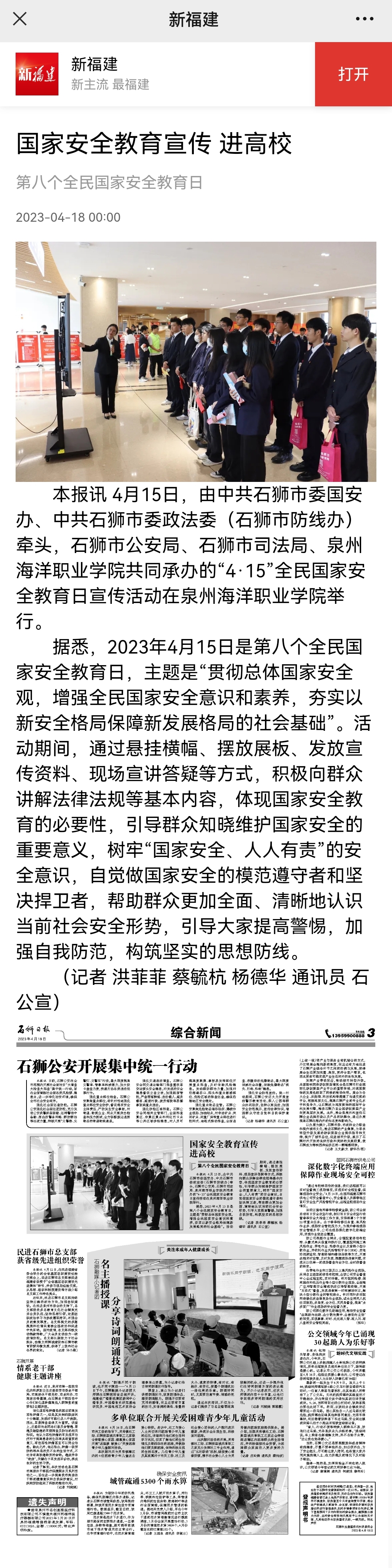 【泉州晚报】石狮开展全民国家安全教育日主题宣传活动