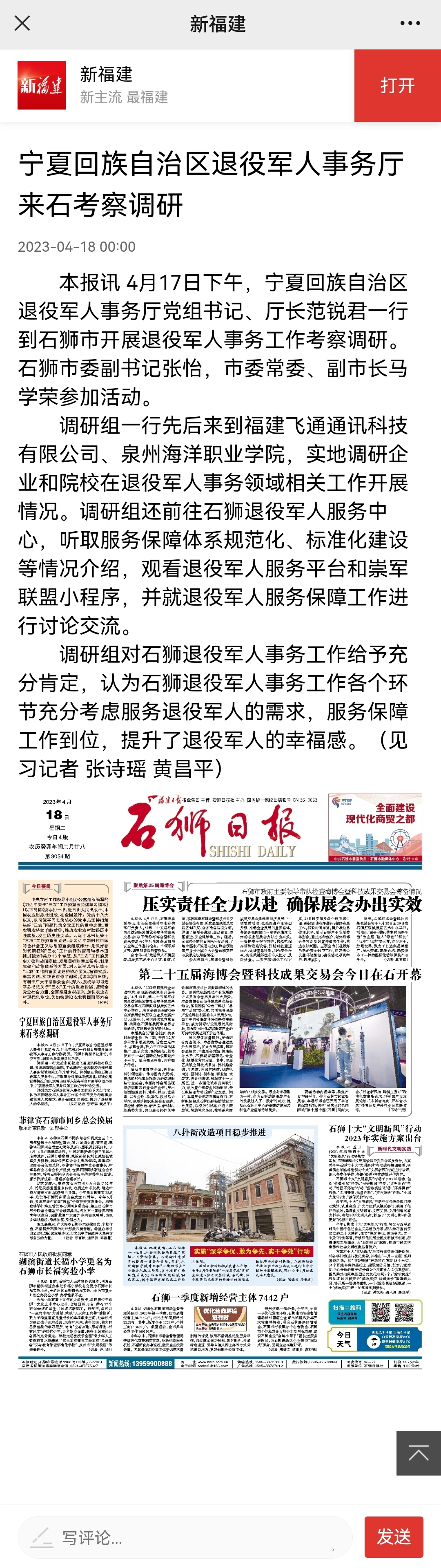 【新福建】宁夏回族自治区退役军人事务厅 来石考察调研