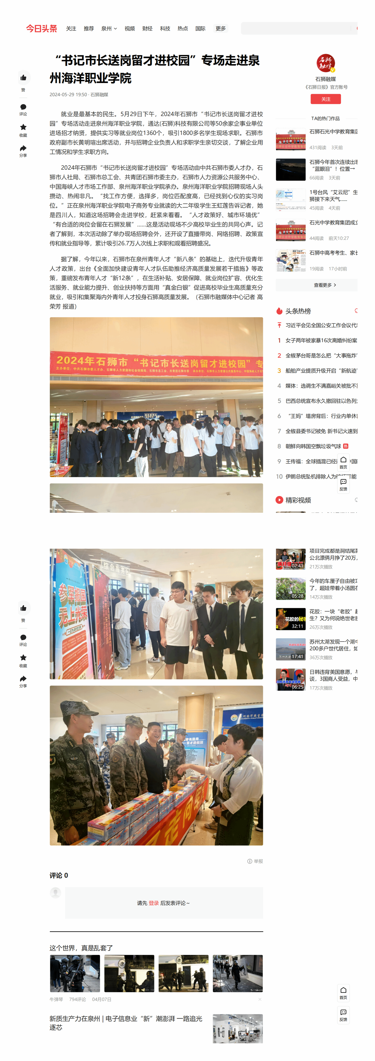 【今日头条】“书记市长送岗留才进校园”专场走进泉州海洋职业学院