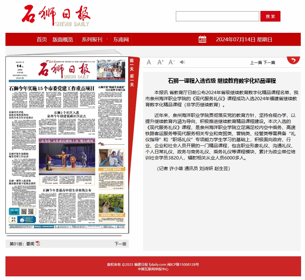 【石狮日报】石狮一课程入选省级 继续教育数字化精品课程