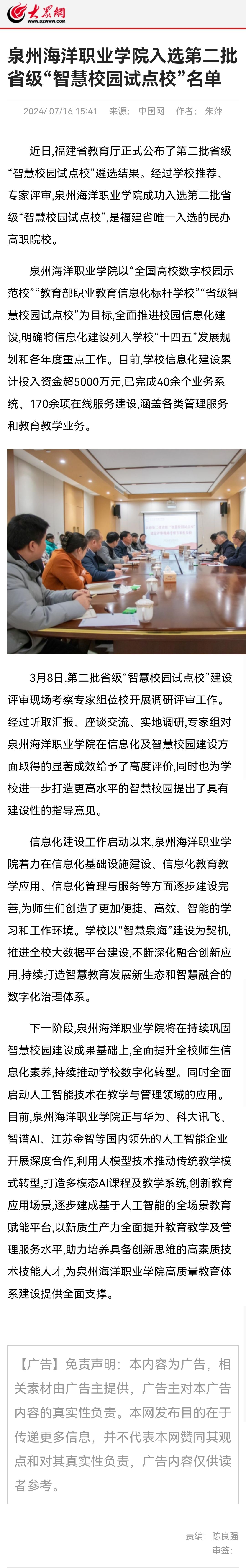 【大众网】泉州海洋职业学院入选第二批省级“智慧校园试点校”名单