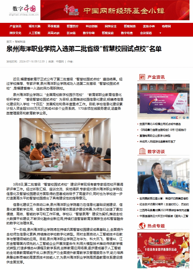 【数字中国】泉州海洋职业学院入选第二批省级“智慧校园试点校”名单