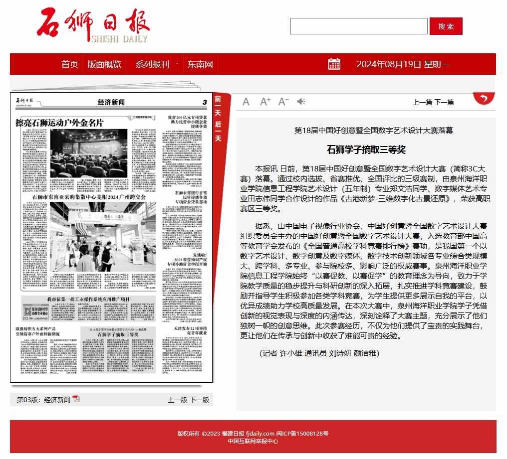 【石狮日报】第18届中国好创意暨全国数字艺术设计大赛落幕 石狮学子摘取三等奖