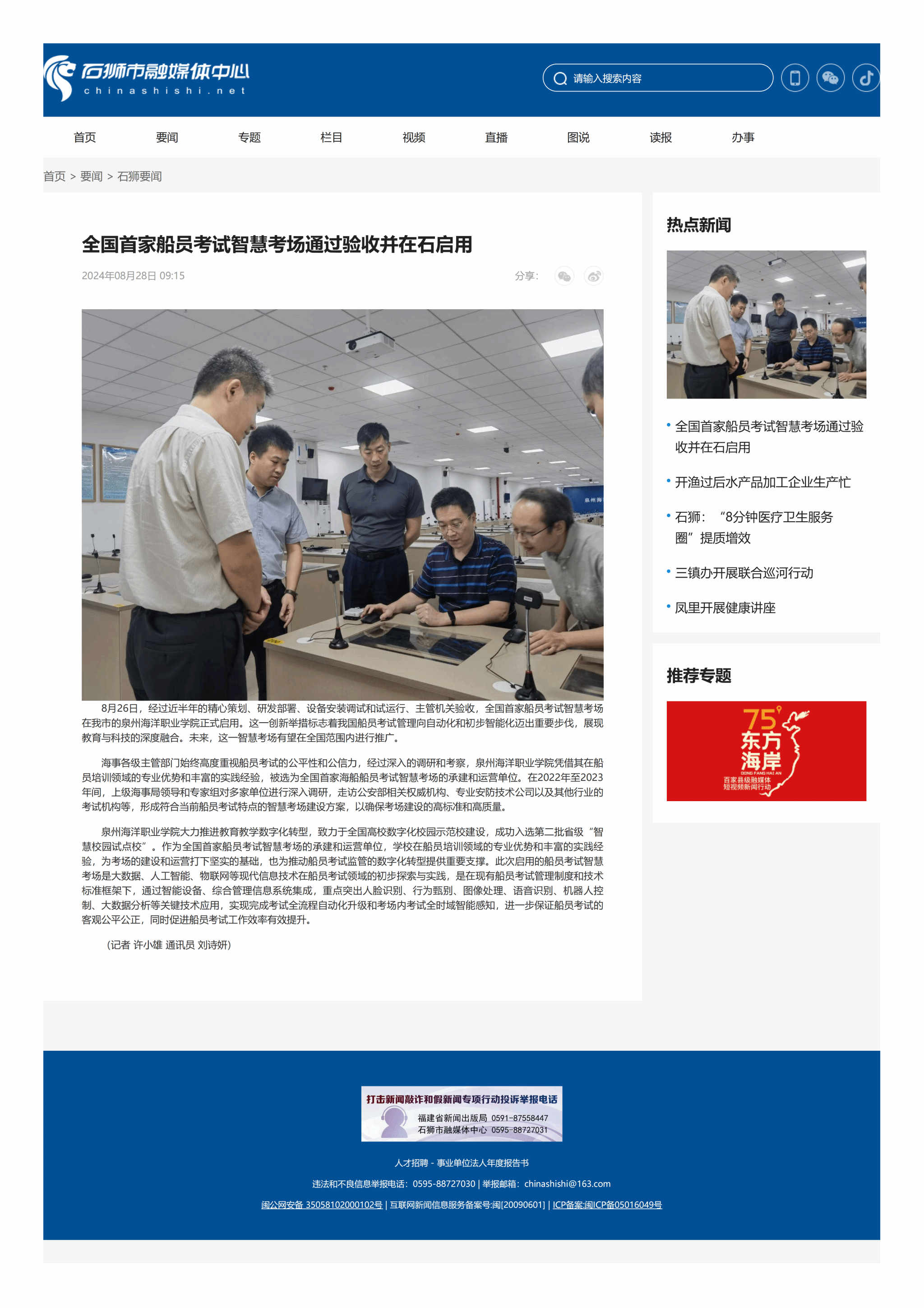 【石狮市融媒体中心】全国首家船员考试智慧考场通过验收并在石启用