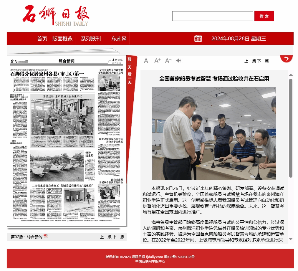 8月26日,经过近半年的精心策划、研发部署、设备安装调试和试运行、主管机关验收,全国首家船员考试智慧考场在我市的泉州海洋职业学院正式启用。这一创新举措标志着我国船员考试管理向自动化和初步智能化迈出重要步伐,展现教育与科技的深度融合。未来,这一智慧考场有望在全国范围内进行推广。