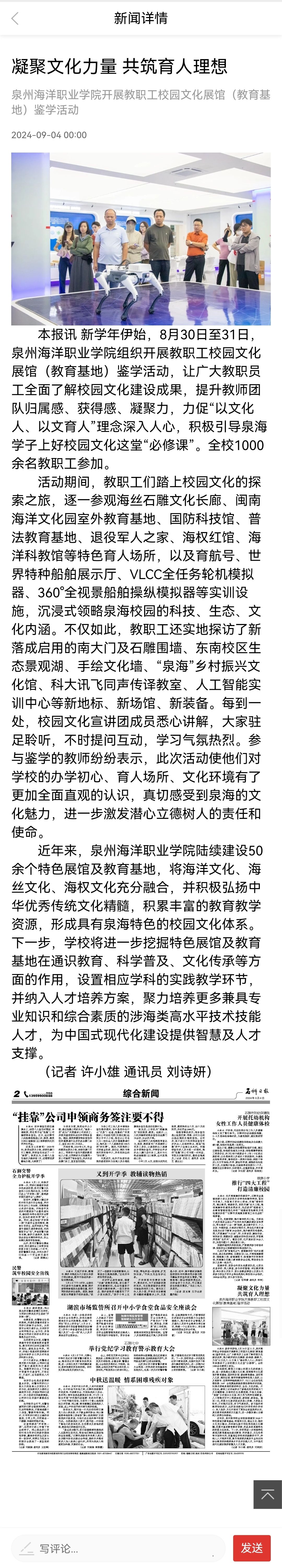 【石狮日报】 凝聚文化力量 共筑育人理想 泉州海洋职业学院开展教职工校园文化展馆(教育基地)鉴学活动