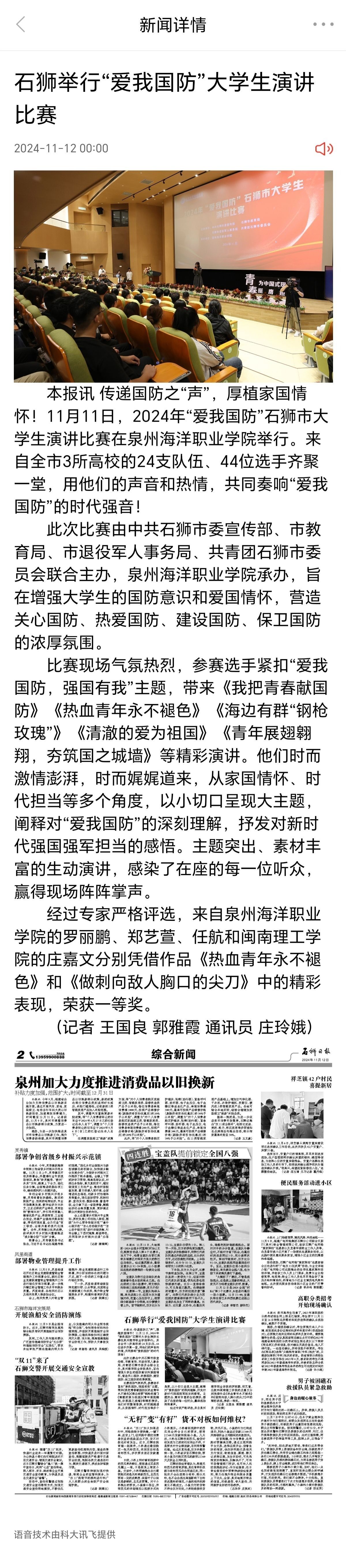 【石狮日报】石狮举行“爱我国防”大学生演讲比赛