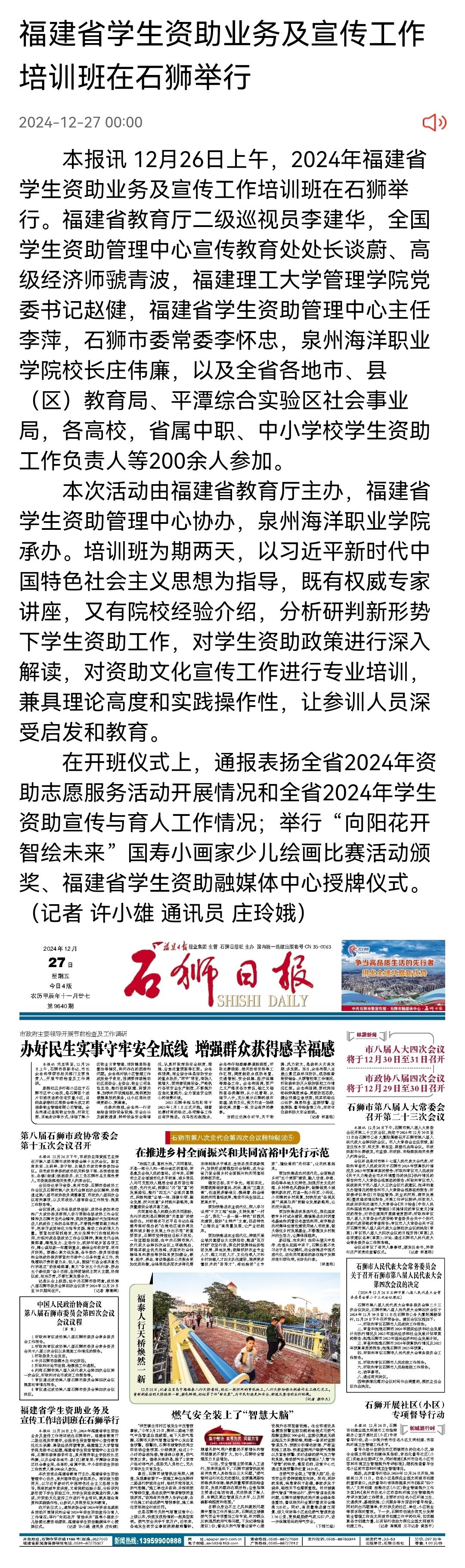 【石狮日报】福建省学生资助业务及宣传工作培训班在石狮举行