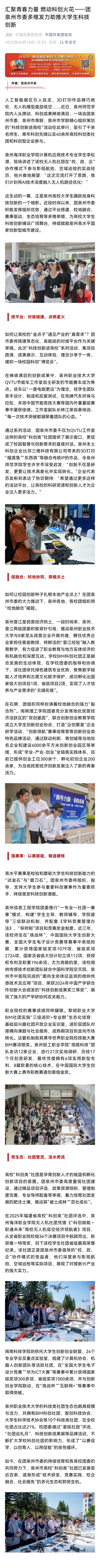 【中国共青团杂志】汇聚青春力量 燃动科创火花——团泉州市委多维发力助推大学生科技创新