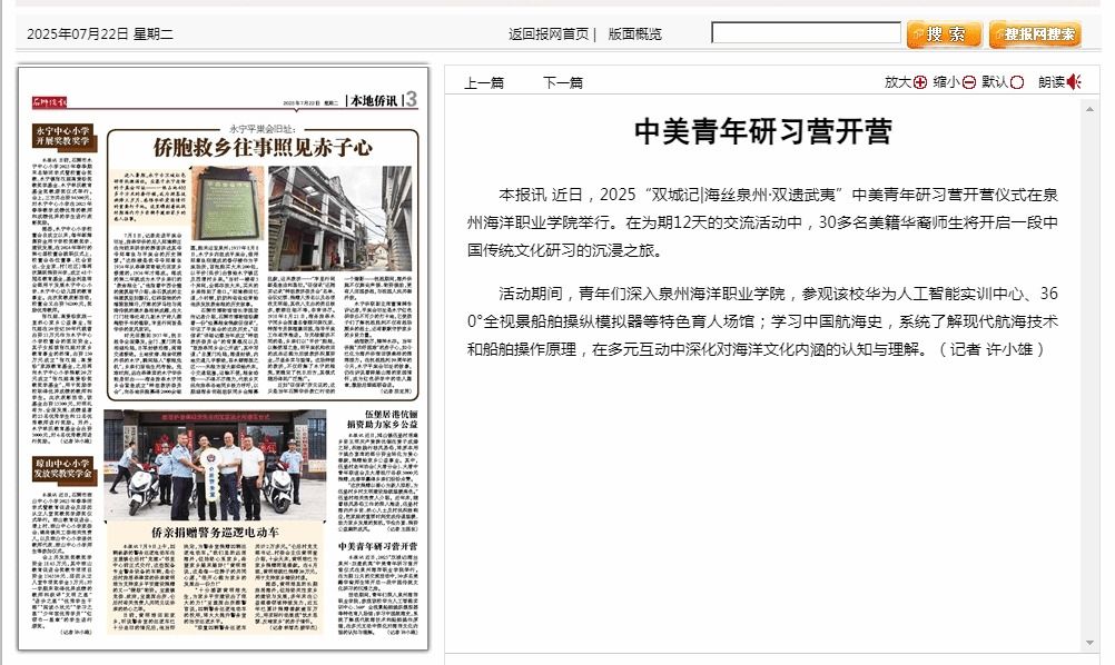 【石狮侨报】中美青年研习营开营