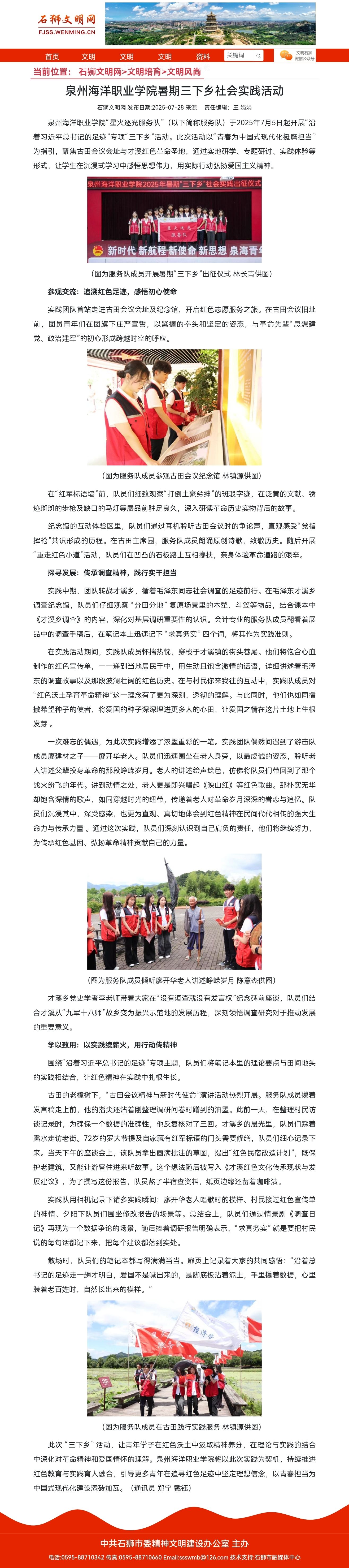 【石狮文明网】泉州海洋职业学院暑期三下乡社会实践活动