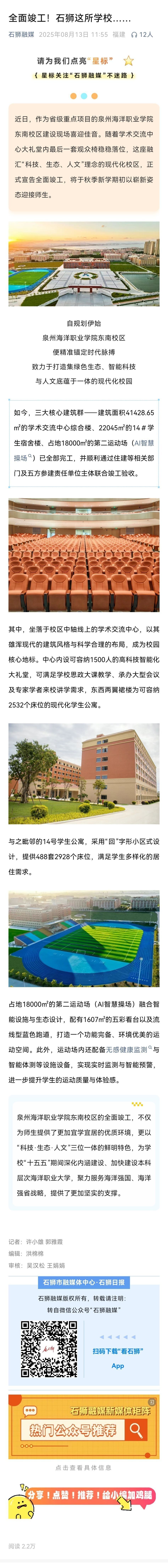 【石狮日报】泉州海洋职业学院东南校区全面竣工