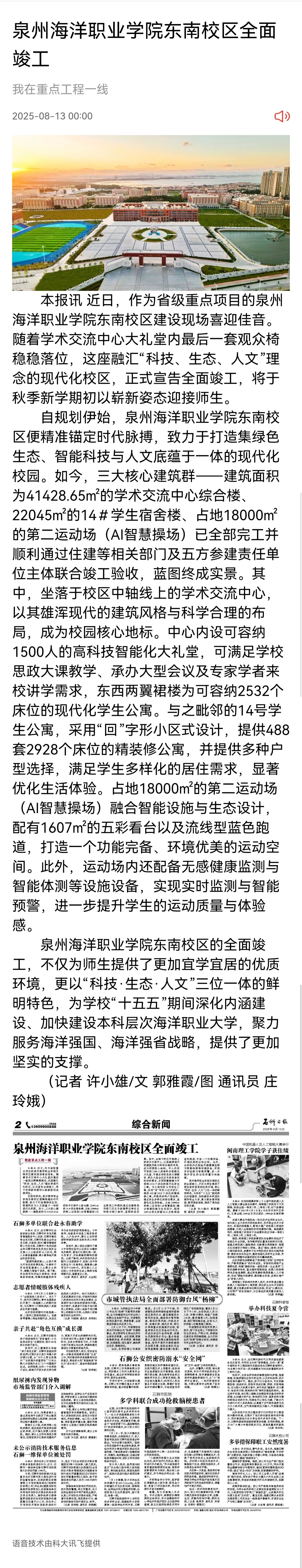 【石狮日报】泉州海洋职业学院东南校区全面竣工