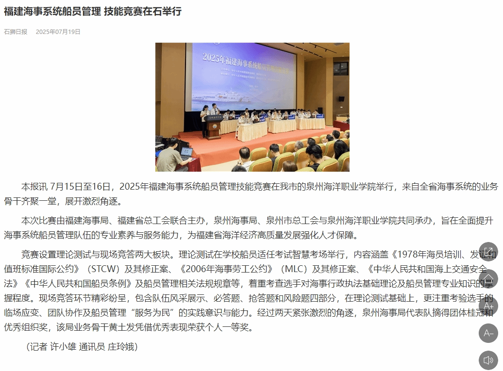 【石狮日报】福建海事系统船员管理 技能竞赛在石举行